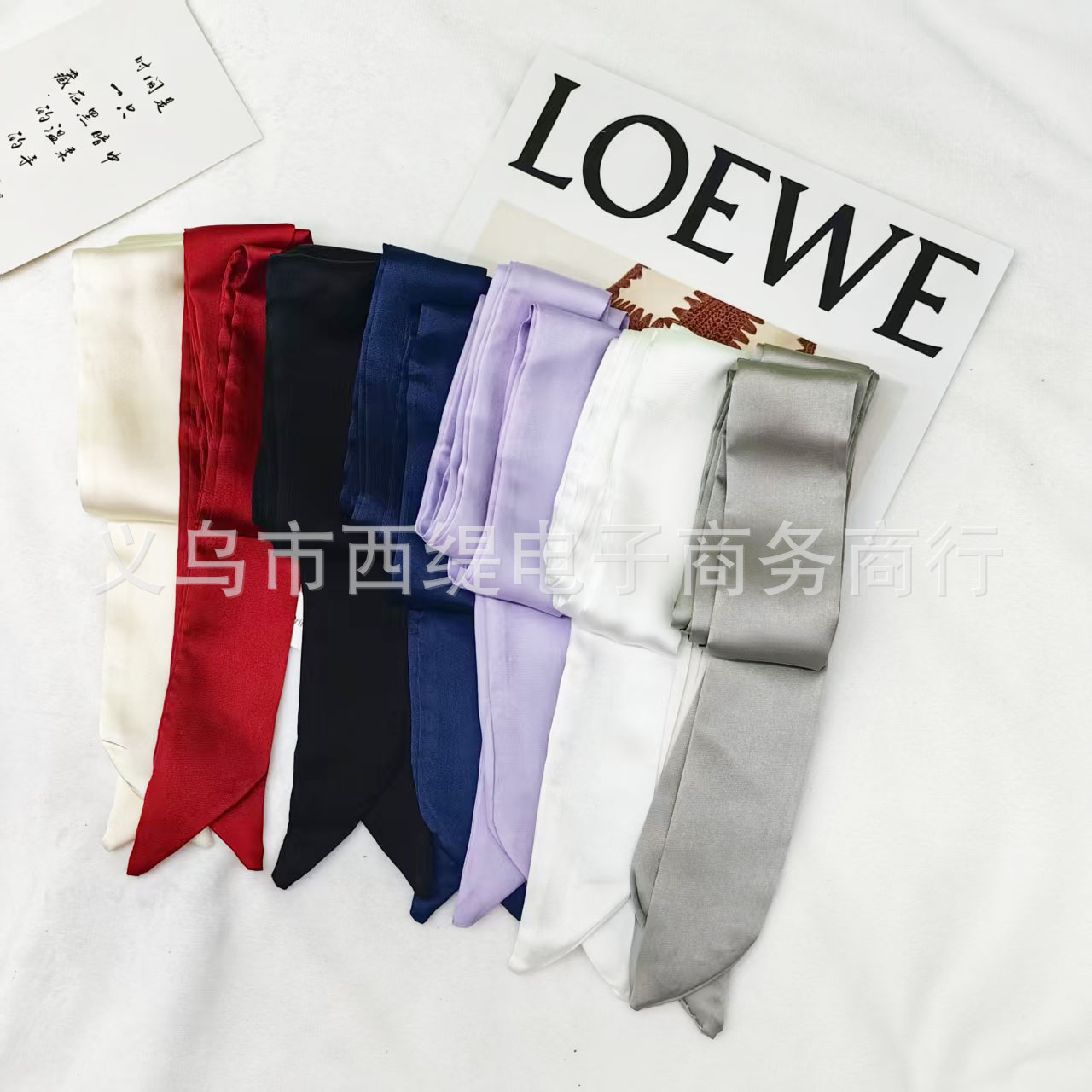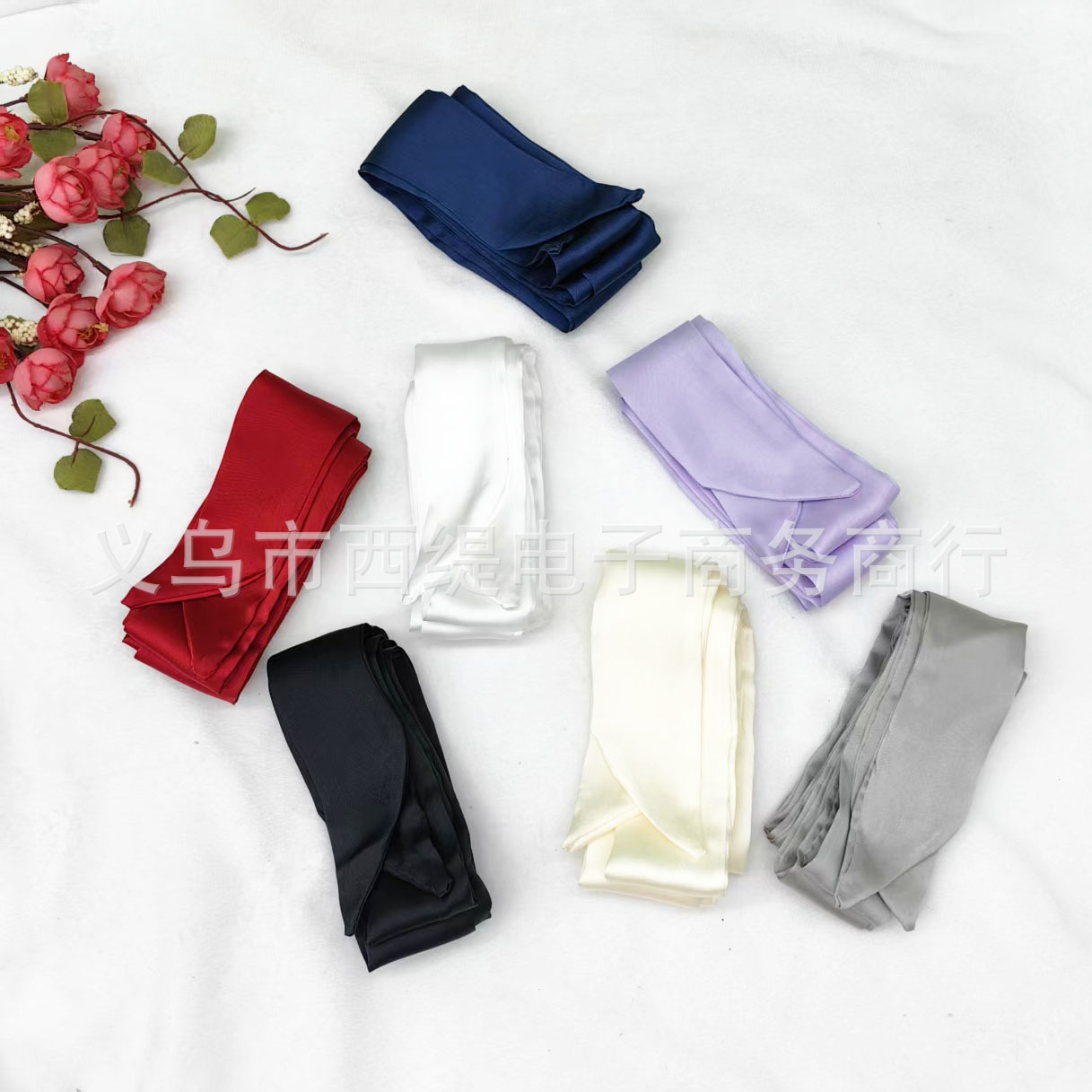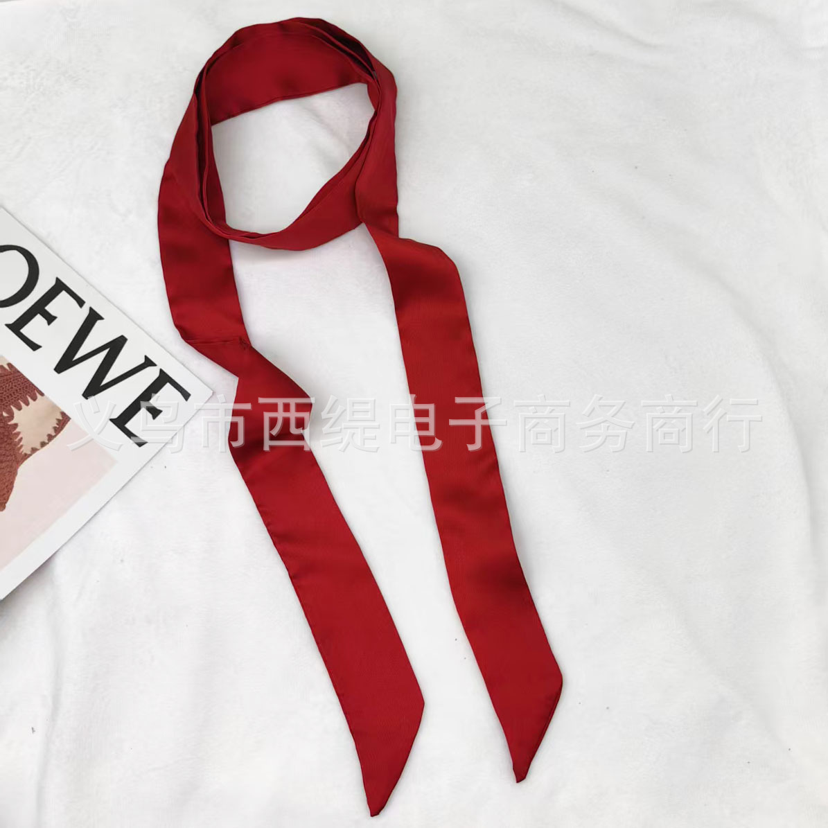새틴 엑스트라 롱 2m 솔리드 컬러 여성용 얇고 좁은 스트립 실크 스카프, 다용도 작은 스카프, 장식용 머리띠, 리본, 가방 벨트