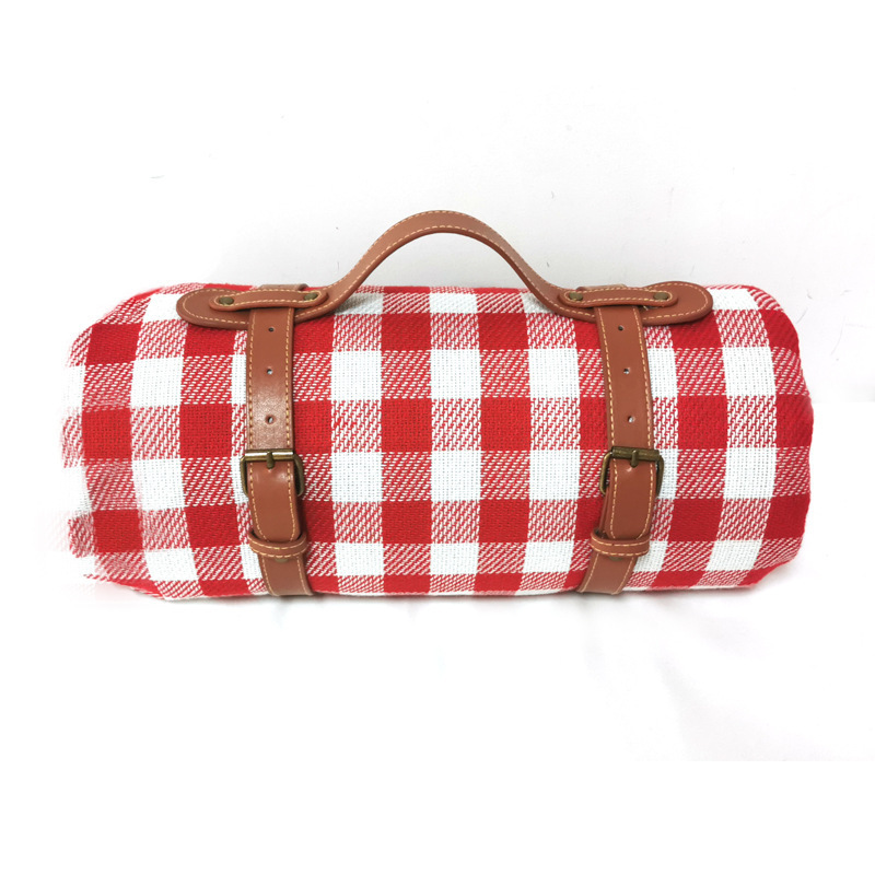 • 빨간색과 흰색 체크무늬 가죽 손잡이