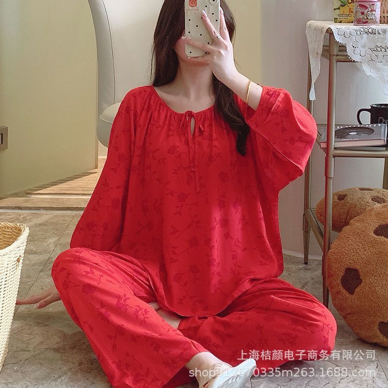 새로운 중국 스타일의 결혼식 빅 레드 새 잠옷 웨딩 가운 축제 여성 면화 실크 가정 의류 느슨한 대형