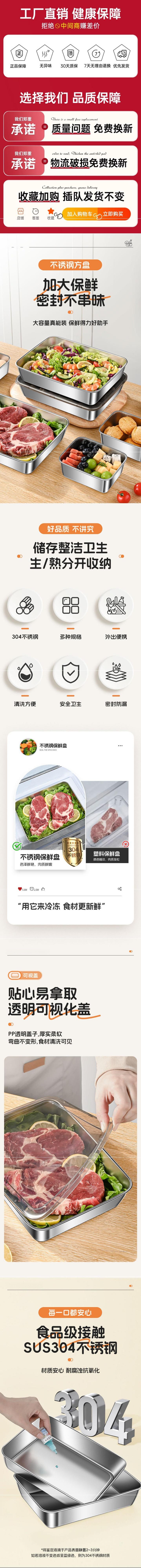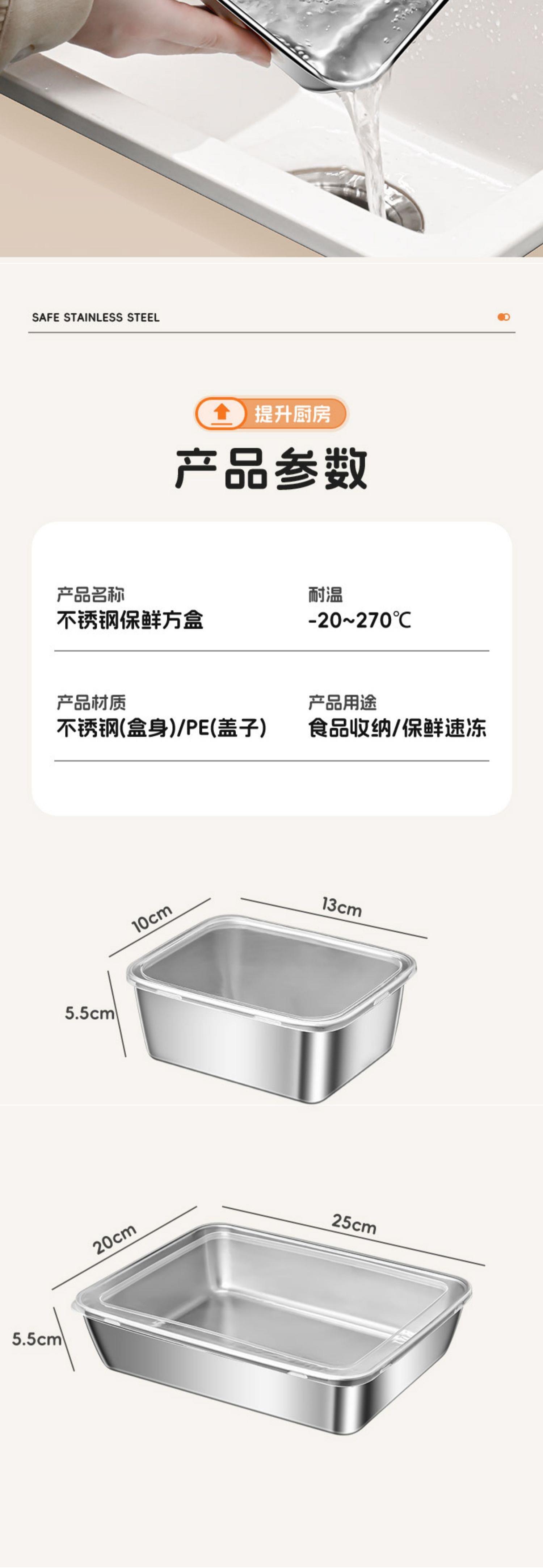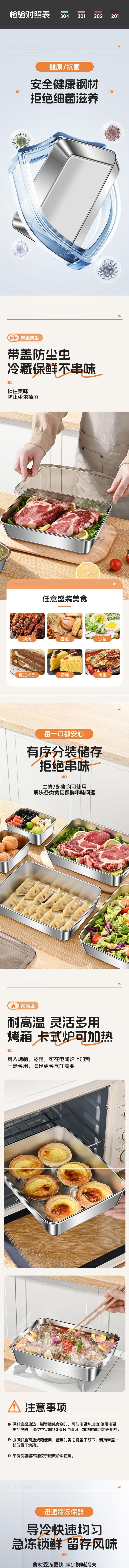 304 스테인레스 스틸 크리스퍼 사각형 접시 뚜껑 포함 직사각형 사각형 냄비 식품 등급 밀봉 상자 접시 트레이 사각형 상자스토어 가기