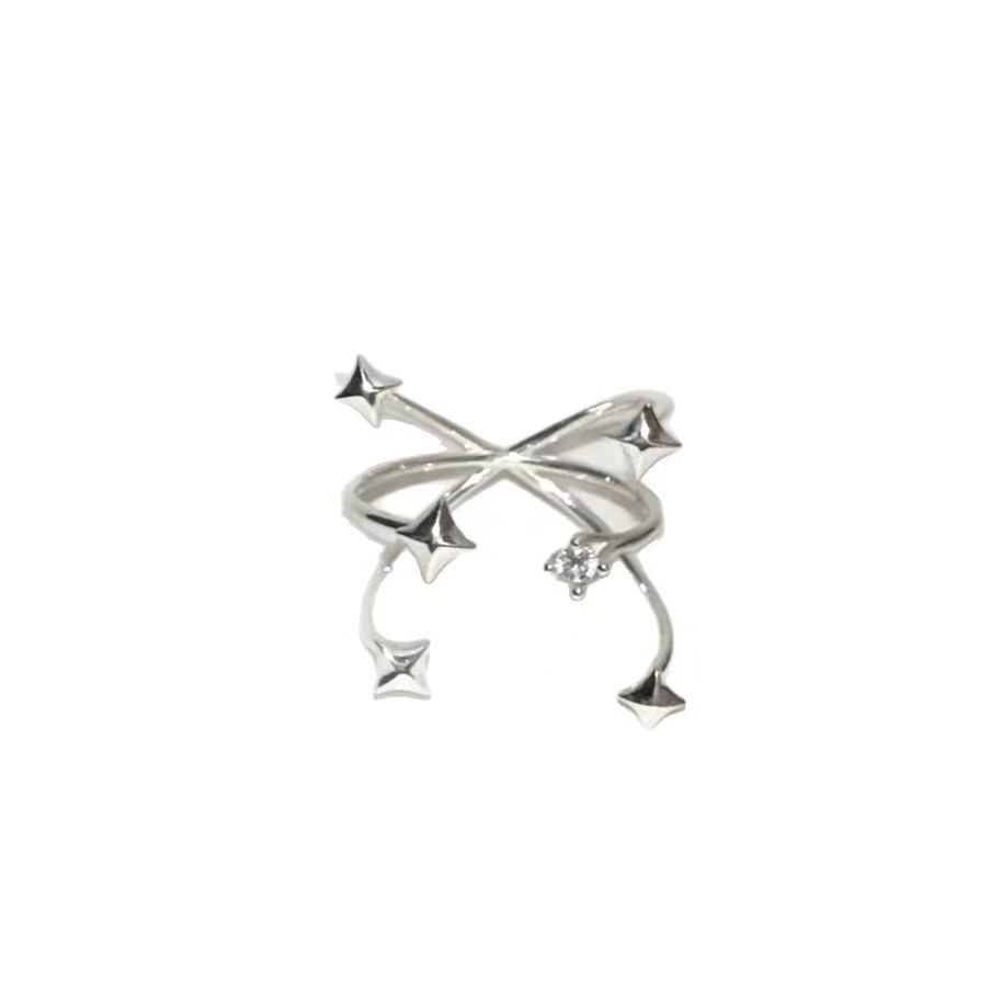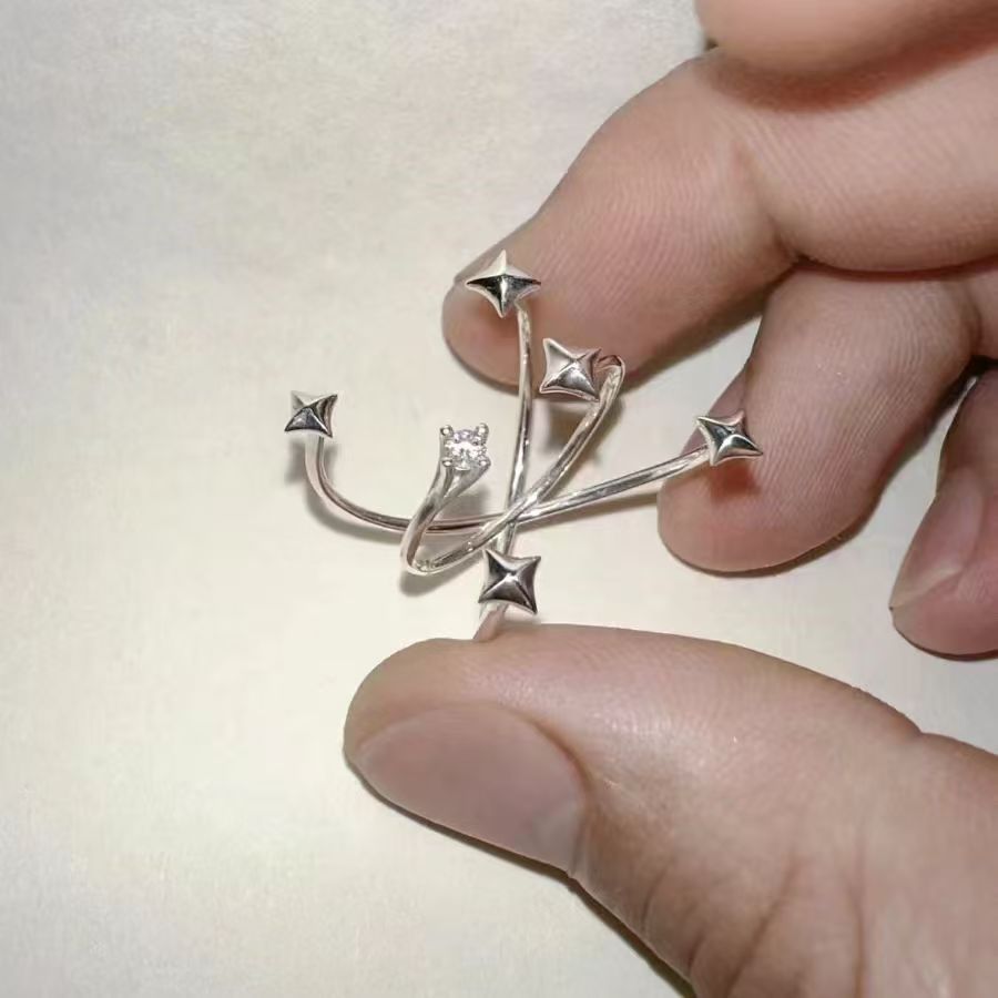 여성용 반투명 네개 별 반지, 패셔너블하고 가벼운 럭셔리 스타 지르콘 검지 반지, 고급 반지, 핸드 쥬얼리