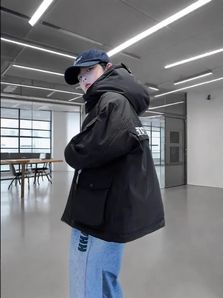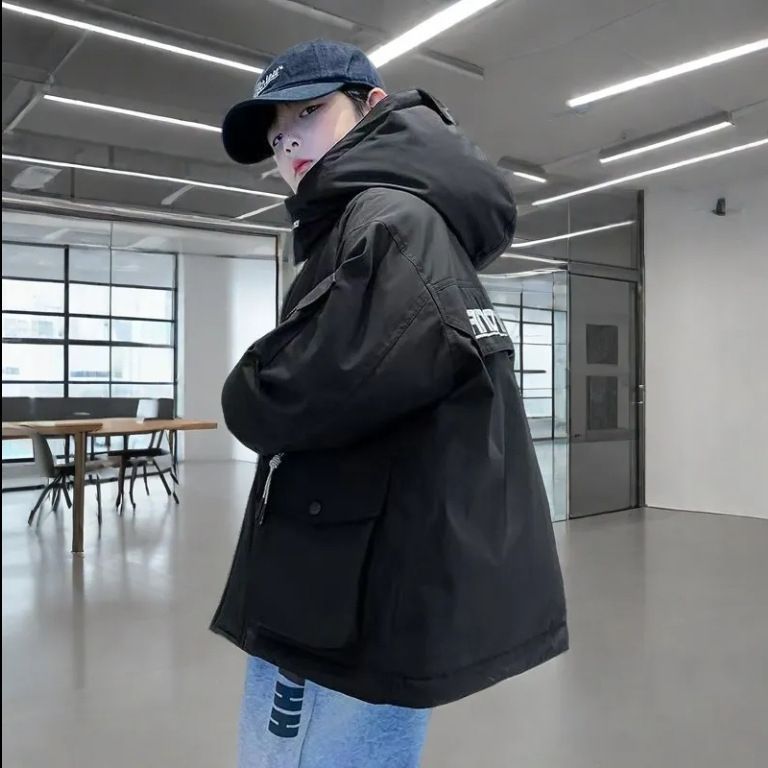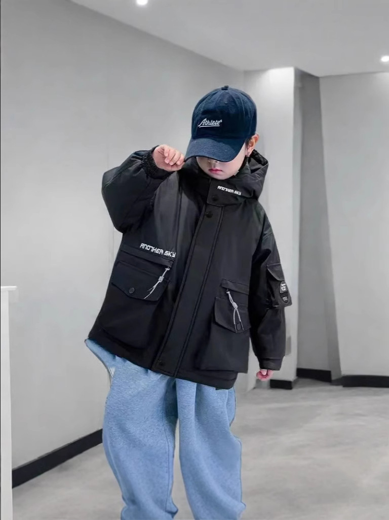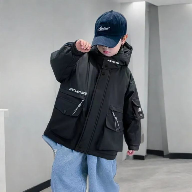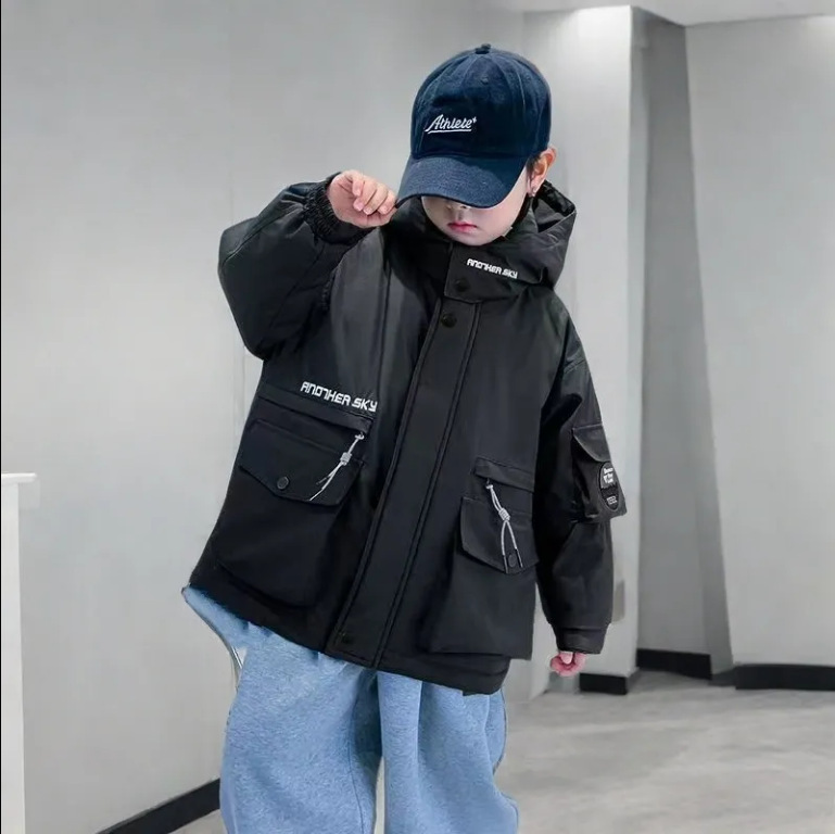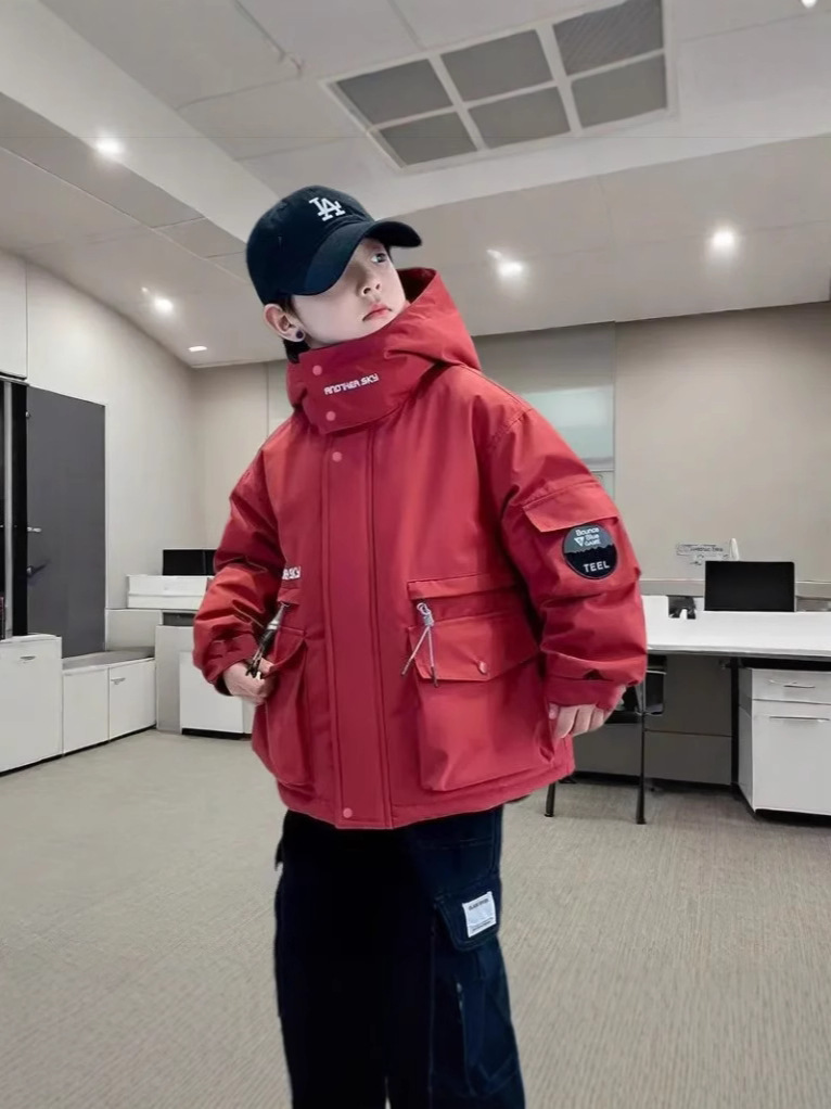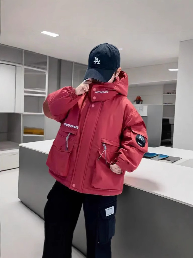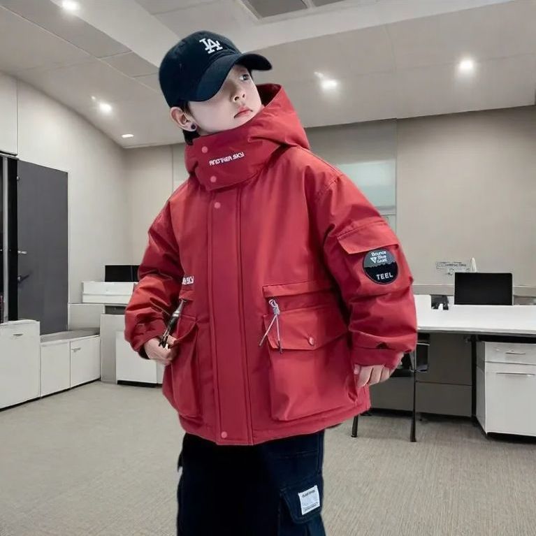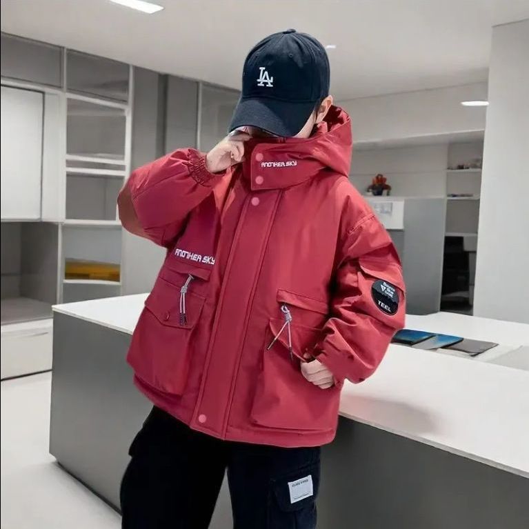 소년의 두꺼운 작업복 후드 아동 면화 의류 2025 새로운 Ankora 빨간색 겨울 의류 중대형 아동 면화 의류 유행스토어 가기