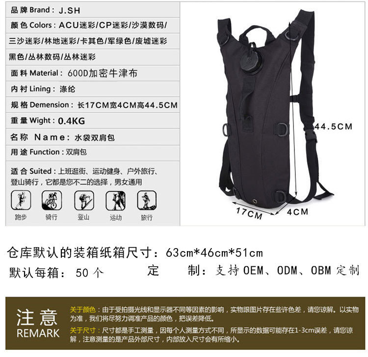 휴대용 다기능 등산 및 캠핑 위장 수화 배낭, 크로스컨트리 사이클링 야외 스포츠 수화 가방