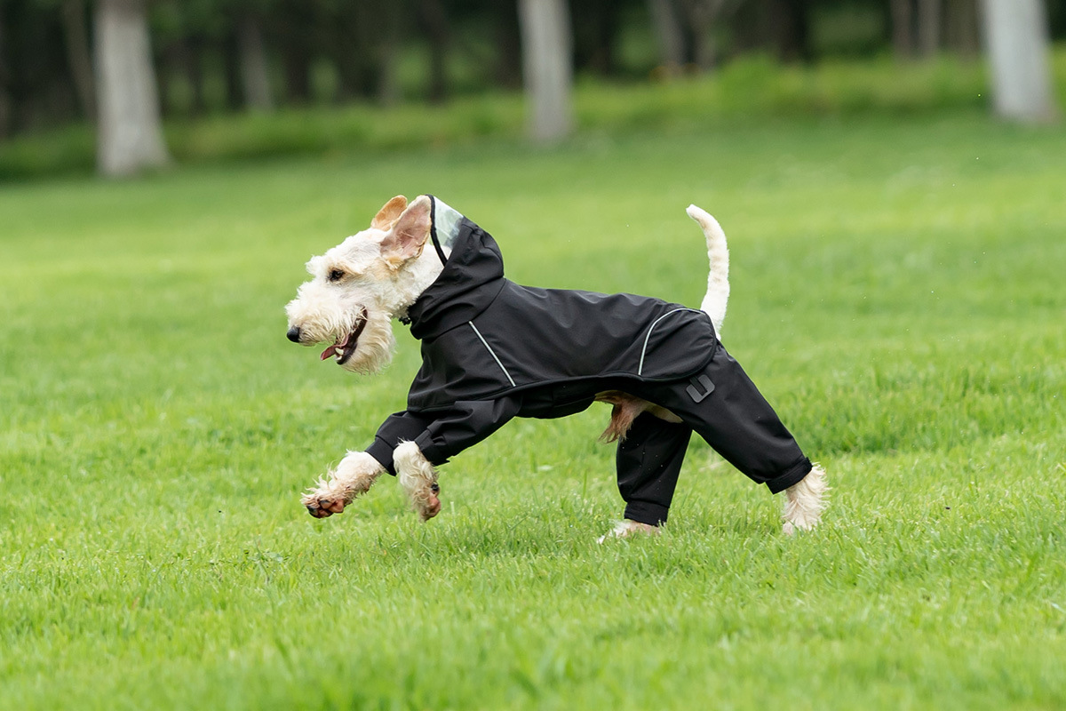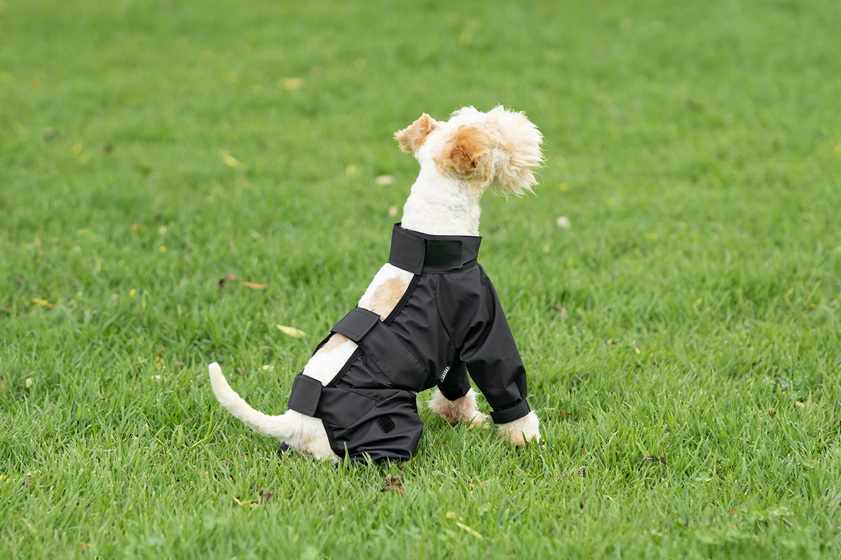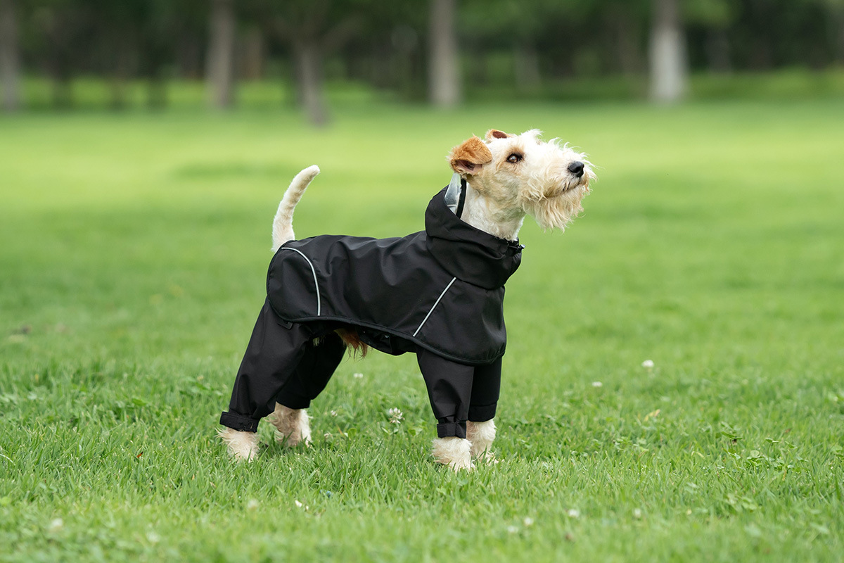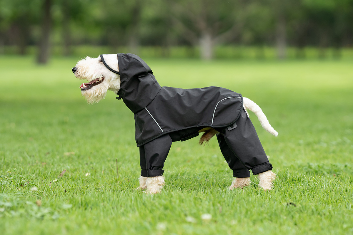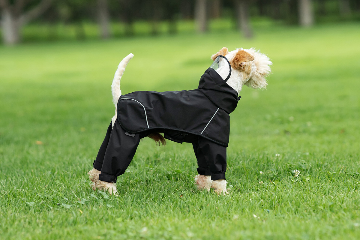 강아지 분할 4발 방수옷, 중소형견용 더러움 방지 바지, 애완동물 비옷, 일체형 애완동물 판초 및 망토