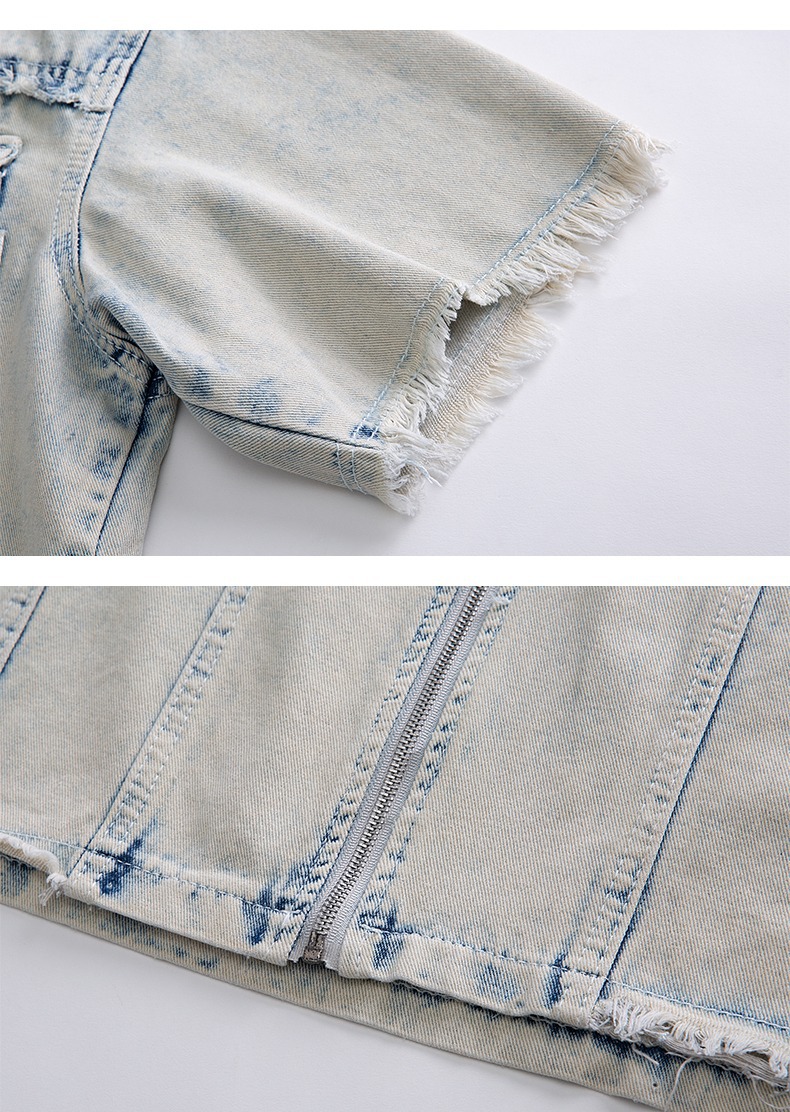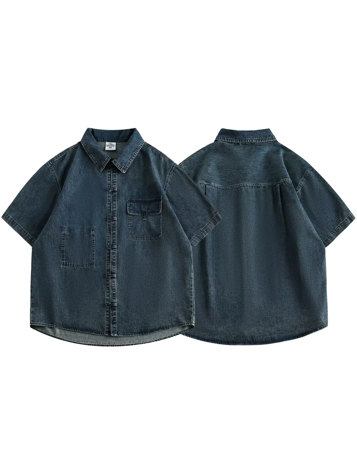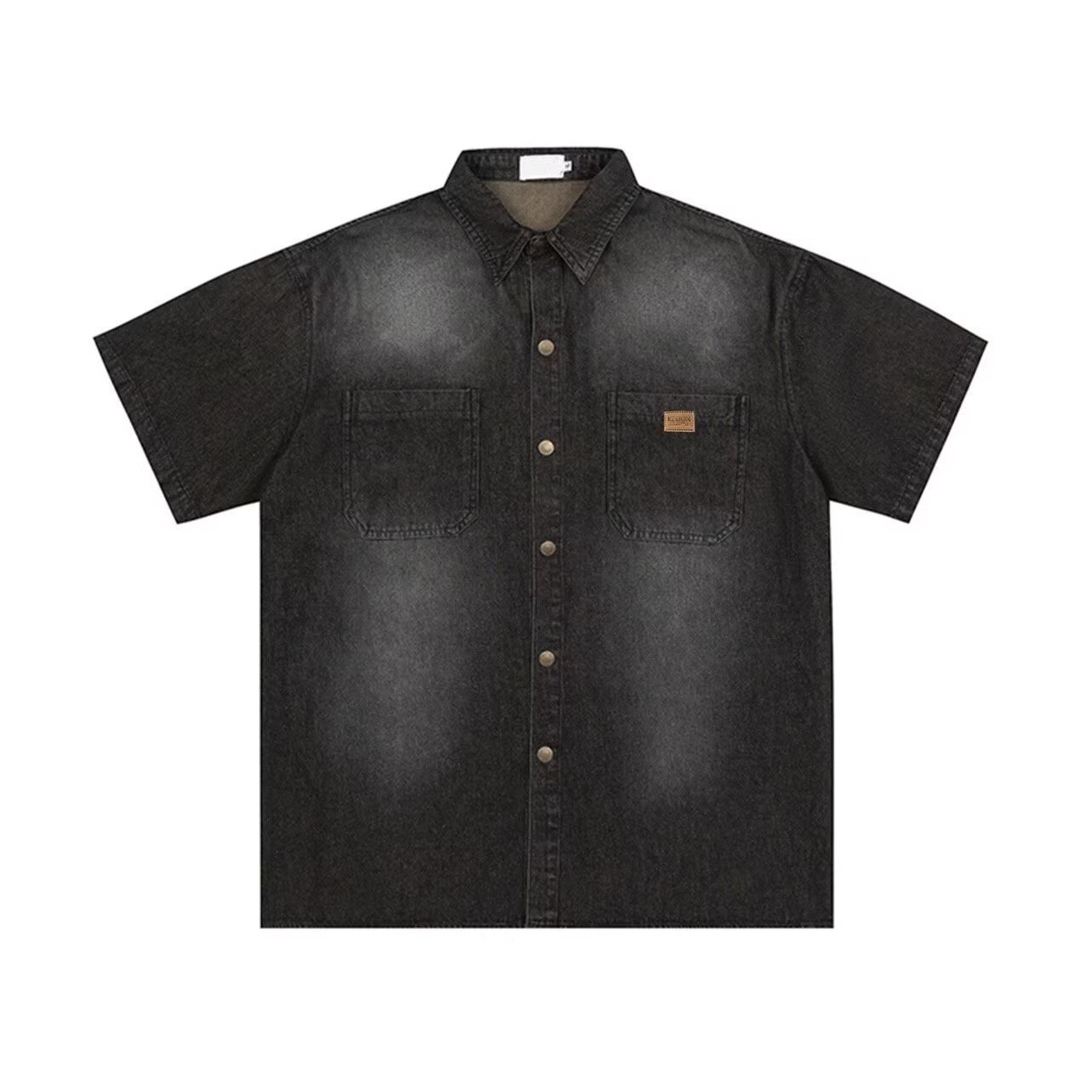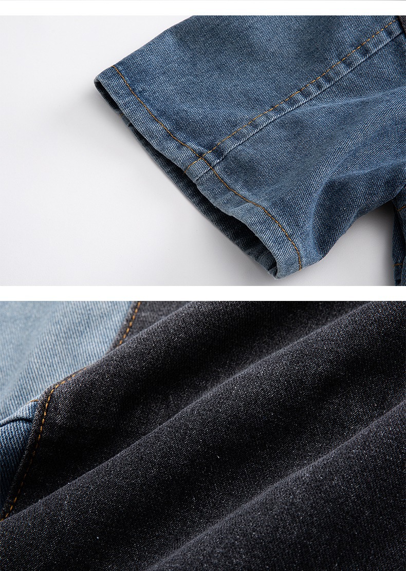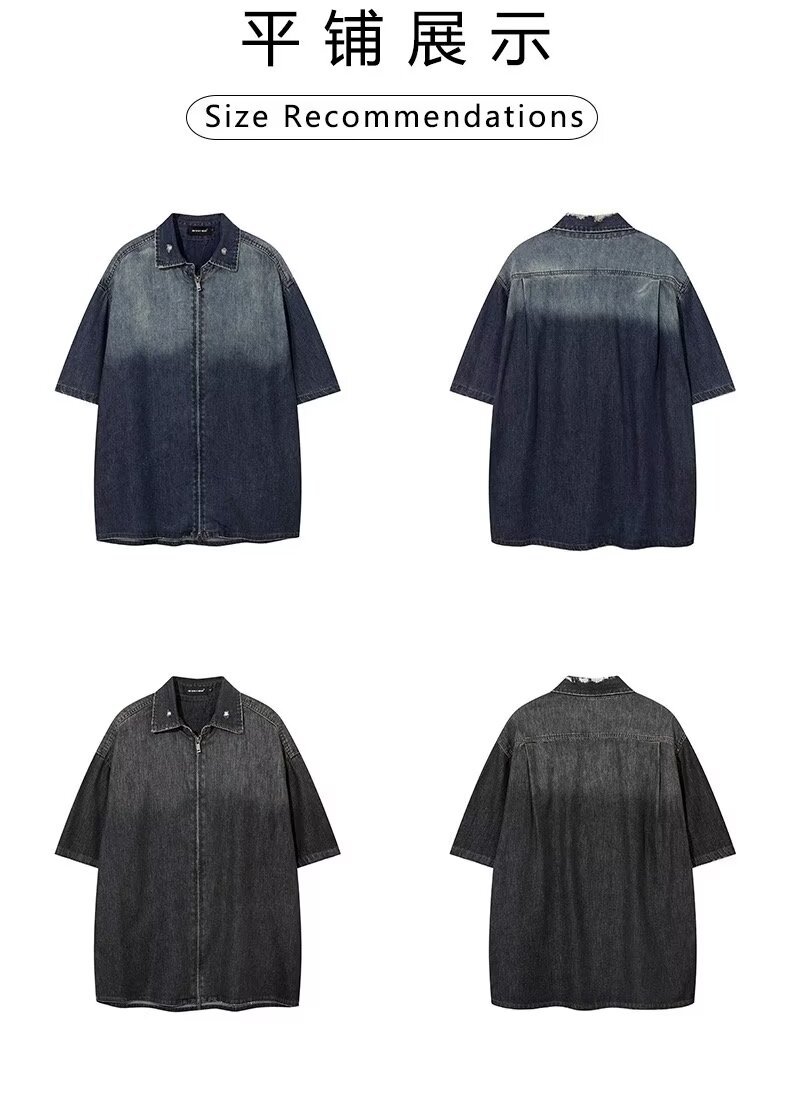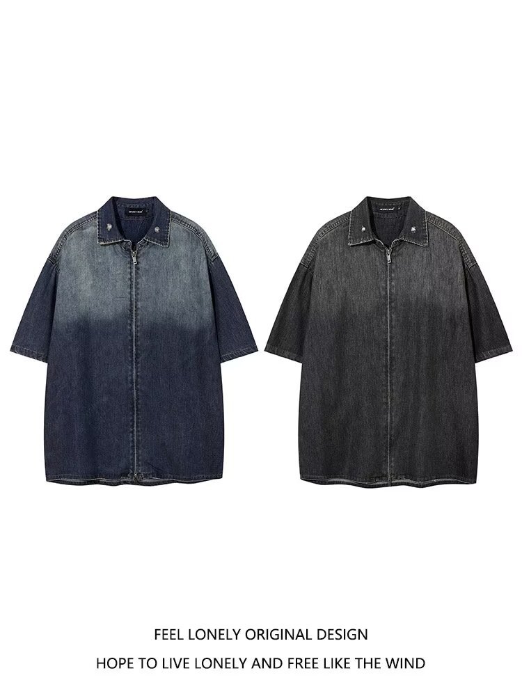 미국 스타일 빈티지 워싱 데님 반팔 셔츠 남성 디자인 루즈핏 캐주얼 셔츠 남녀공용스토어 가기