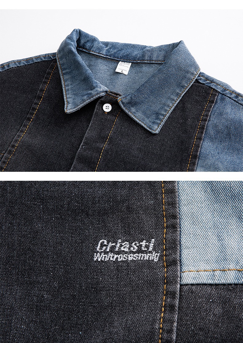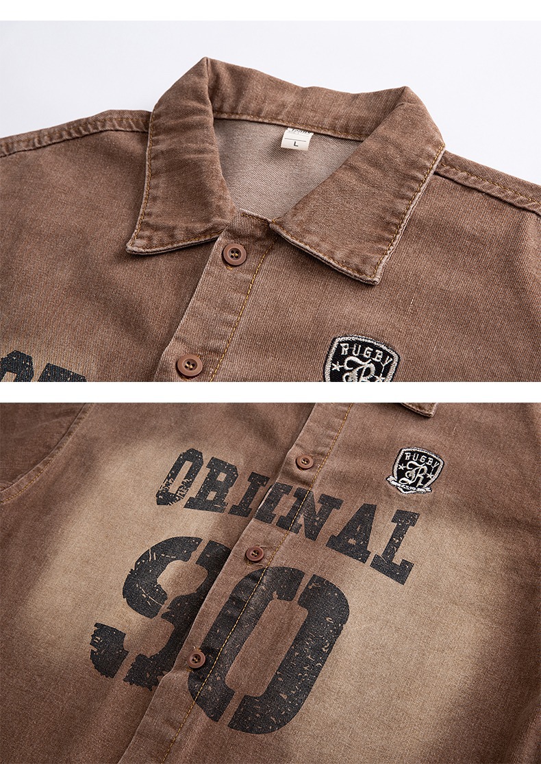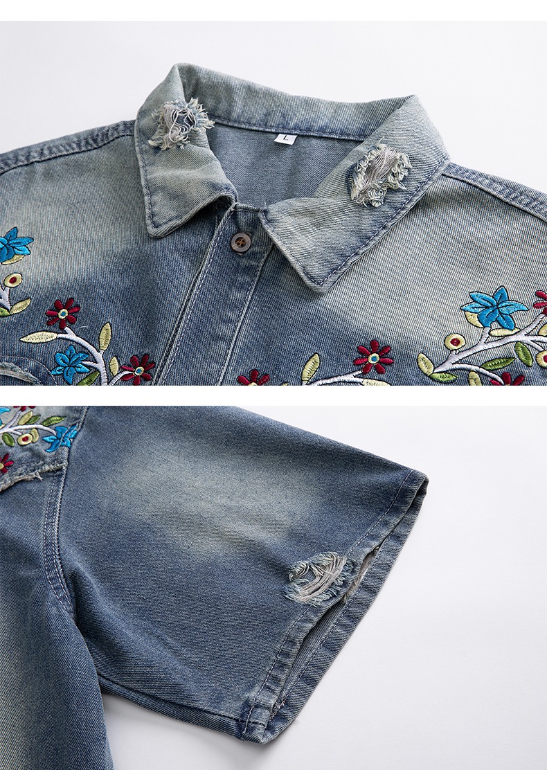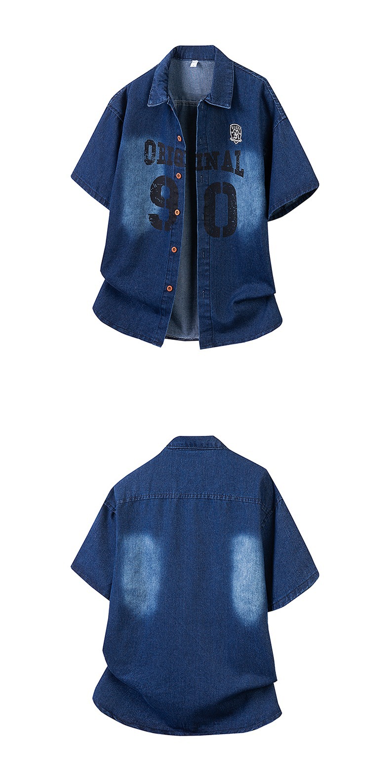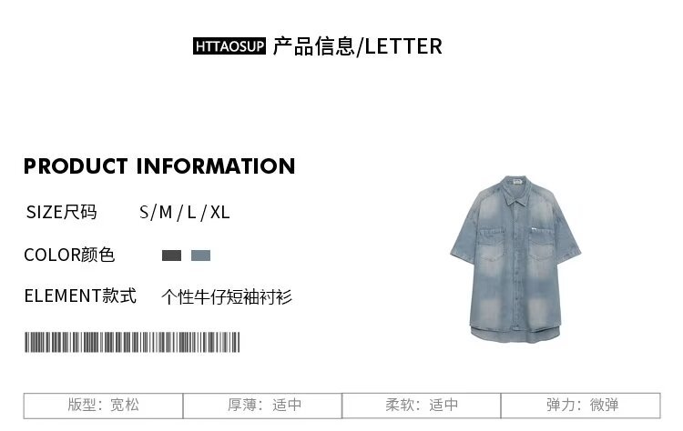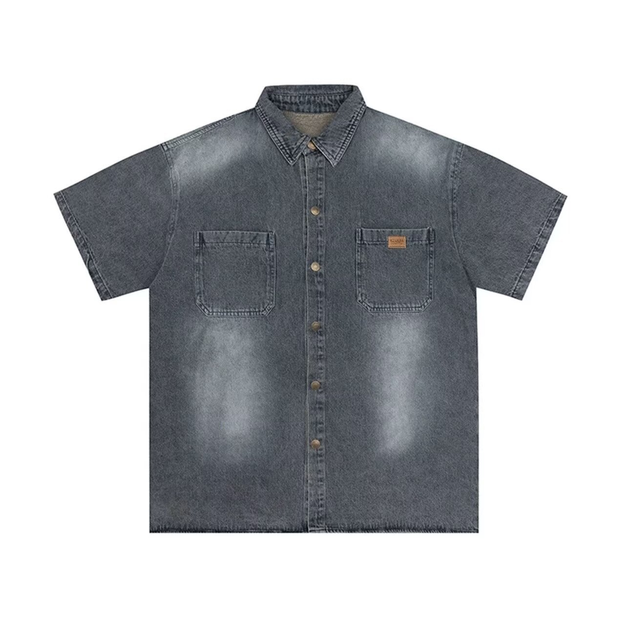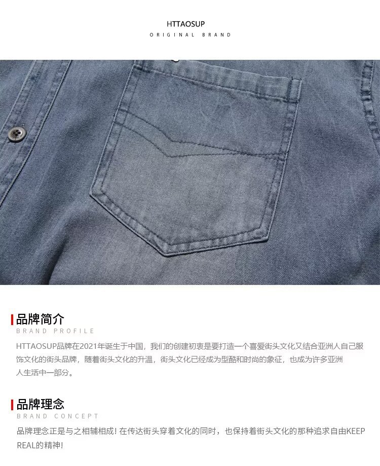 미국 스타일 빈티지 워싱 데님 반팔 셔츠 남성 디자인 루즈핏 캐주얼 셔츠 남녀공용스토어 가기