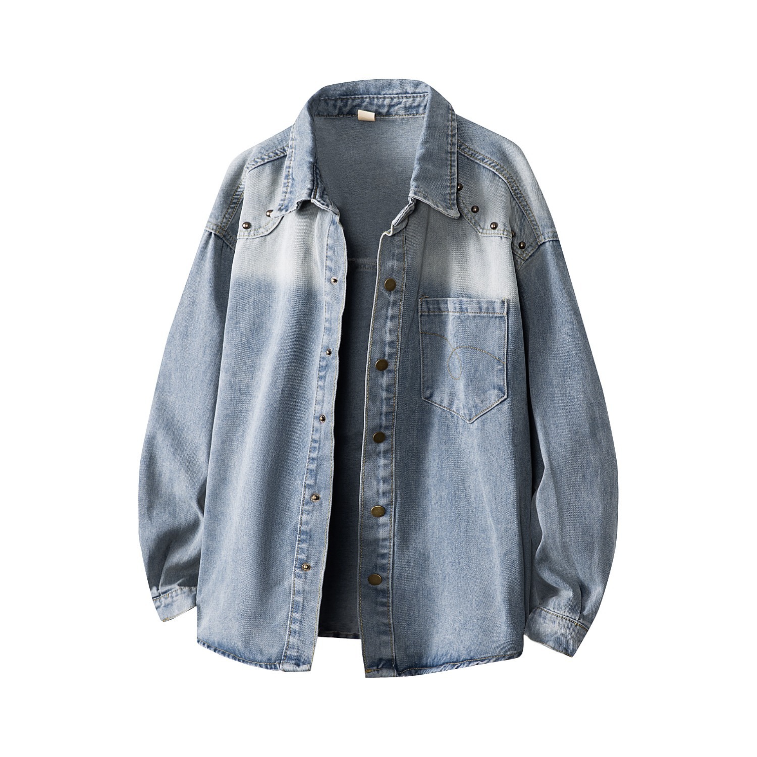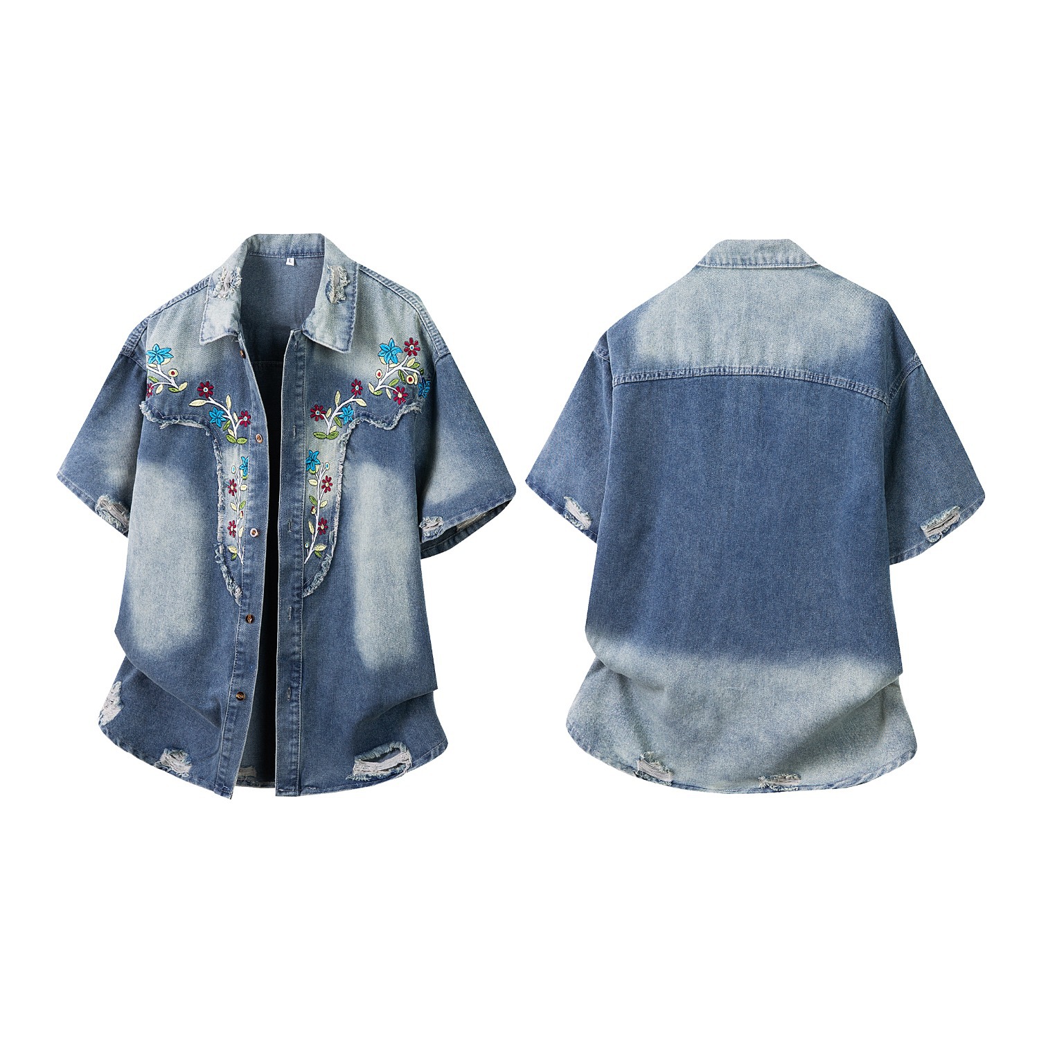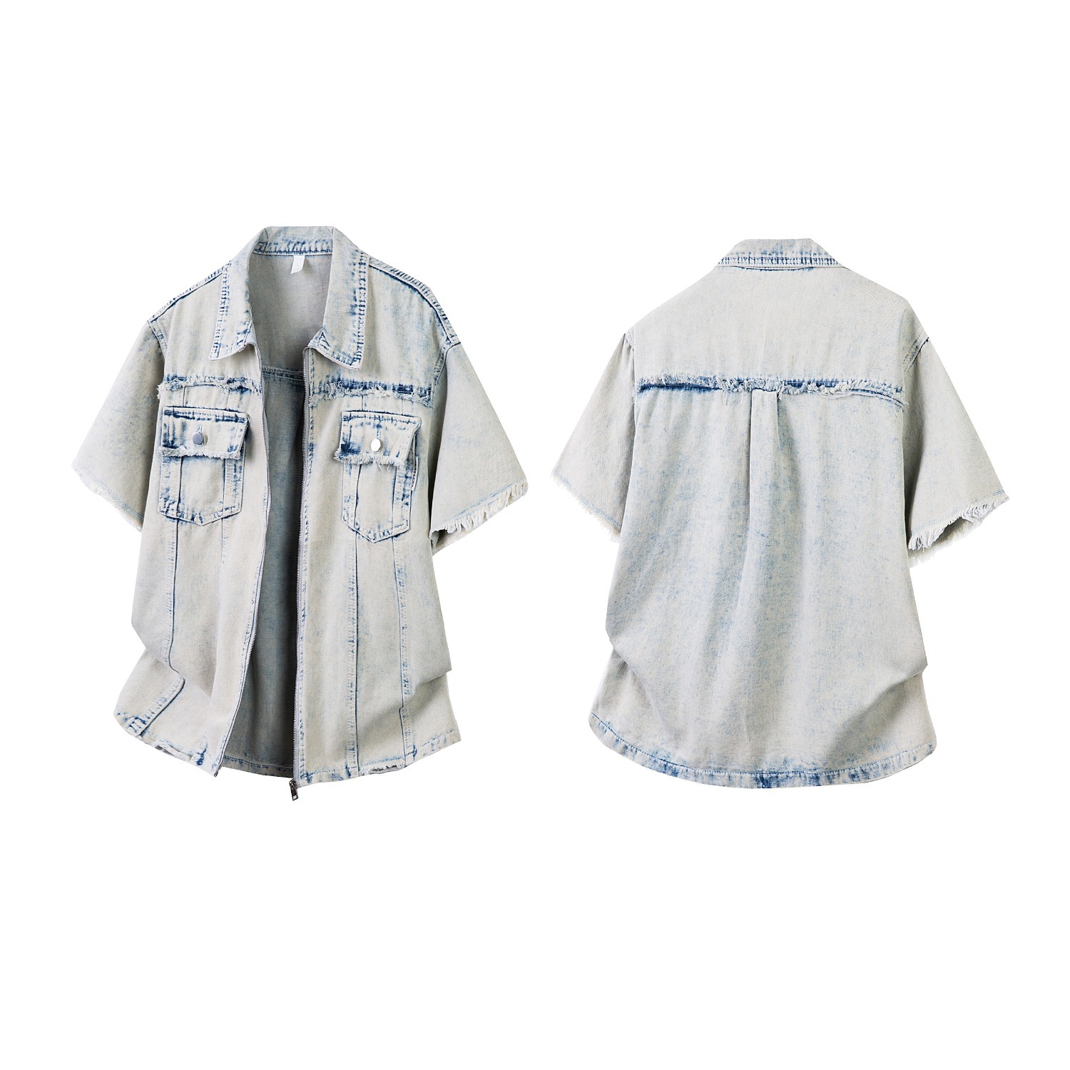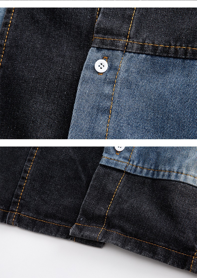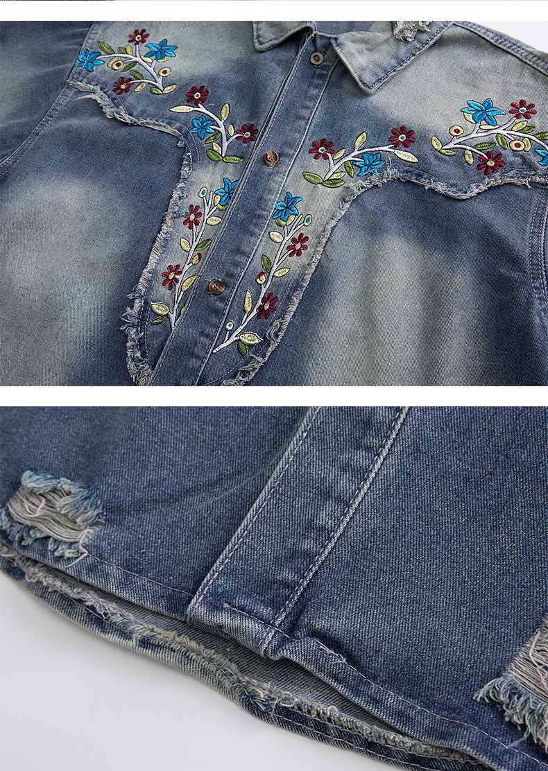 미국 스타일 빈티지 워싱 데님 반팔 셔츠 남성 디자인 루즈핏 캐주얼 셔츠 남녀공용스토어 가기