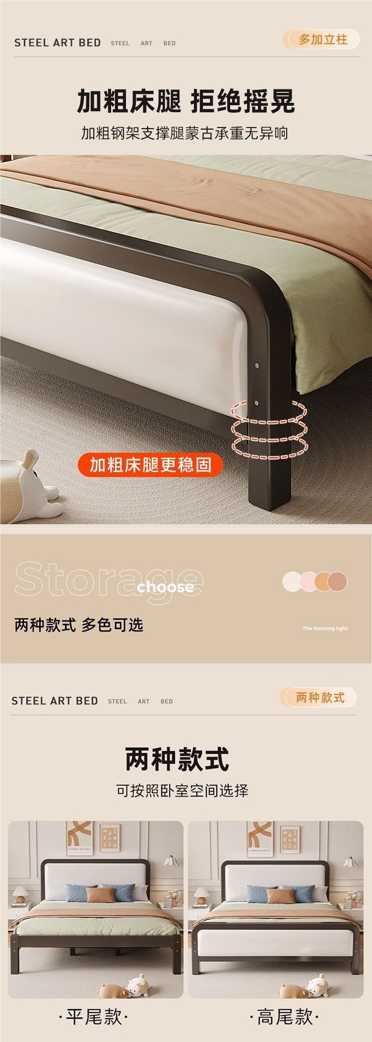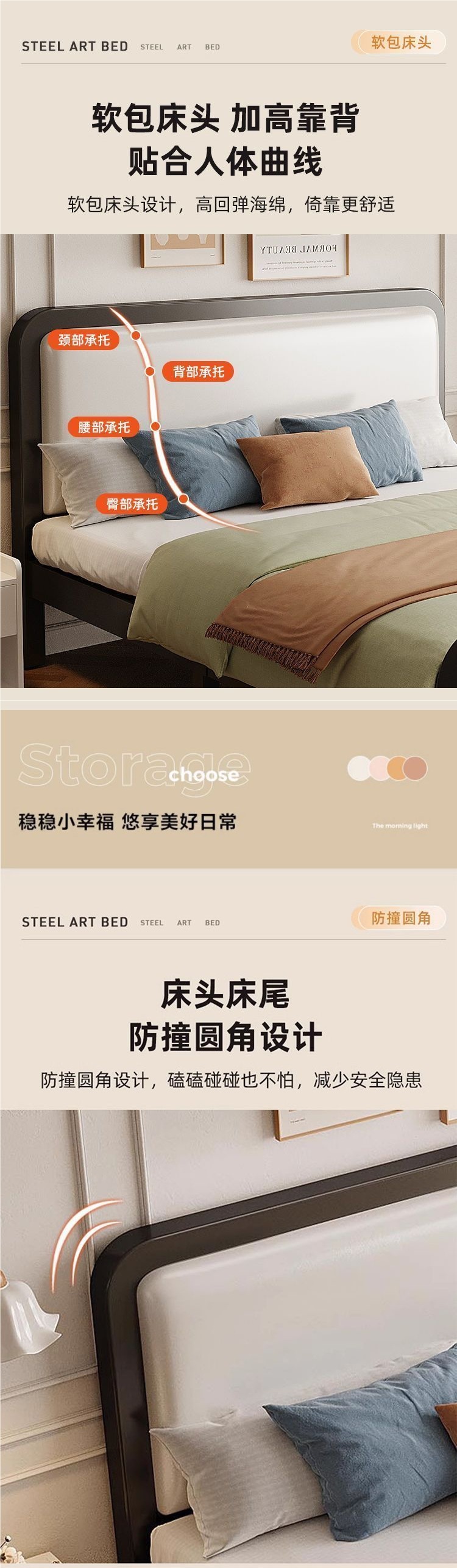단철 침대 소프트 패키지 침대 현대적인 단순 경제적 인 1.5m 더블 1.9m m 어린이 철 침대 강화스토어 가기