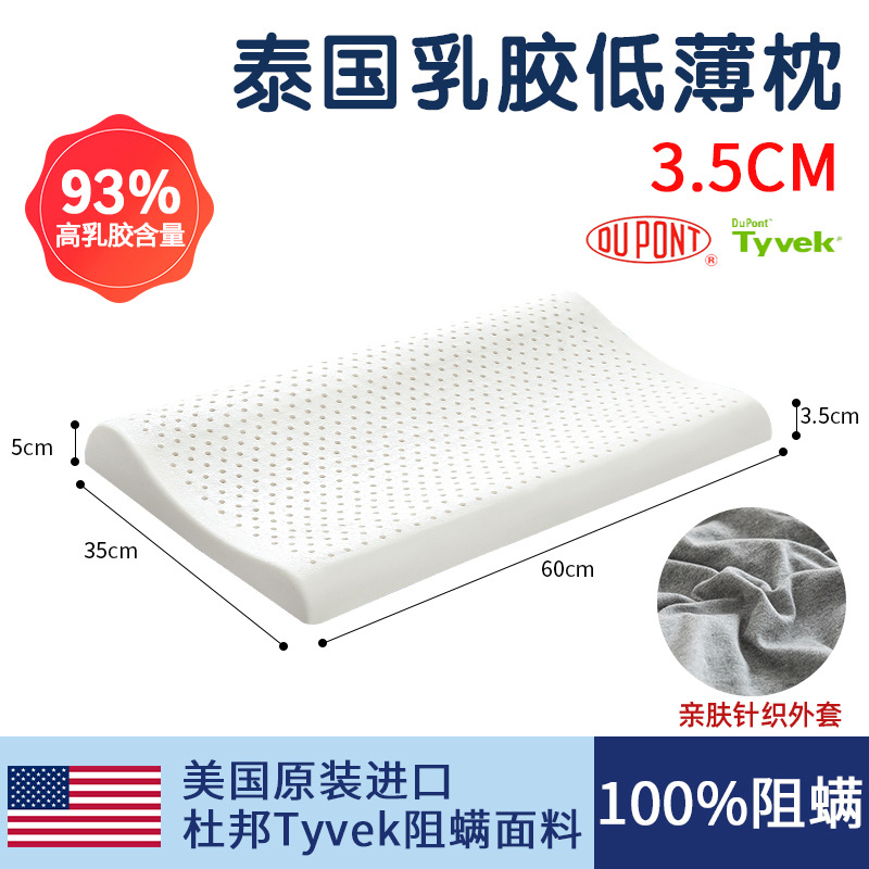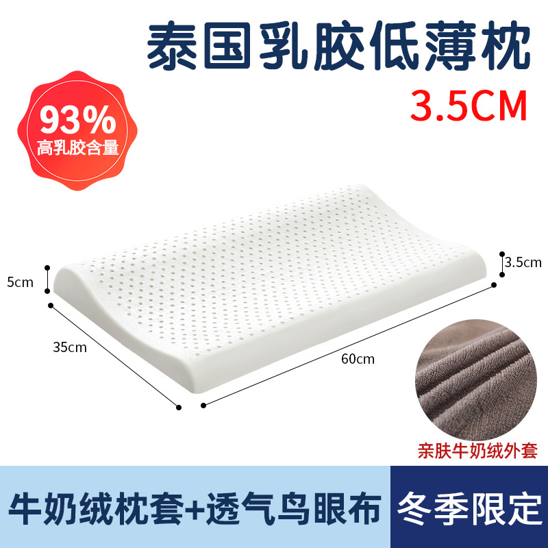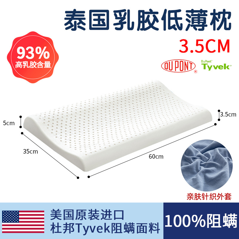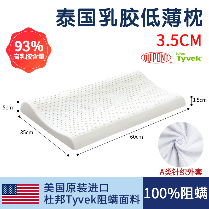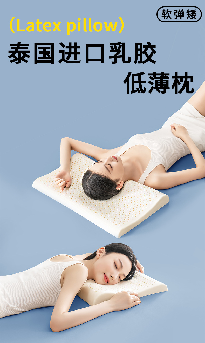 태국 천연 라텍스 베개 남성과 여성을위한 낮은 베개 단일 고무 학생 얇은 베개 코어 낮은 베개는 경추를 보호하고 수면을 돕습니다