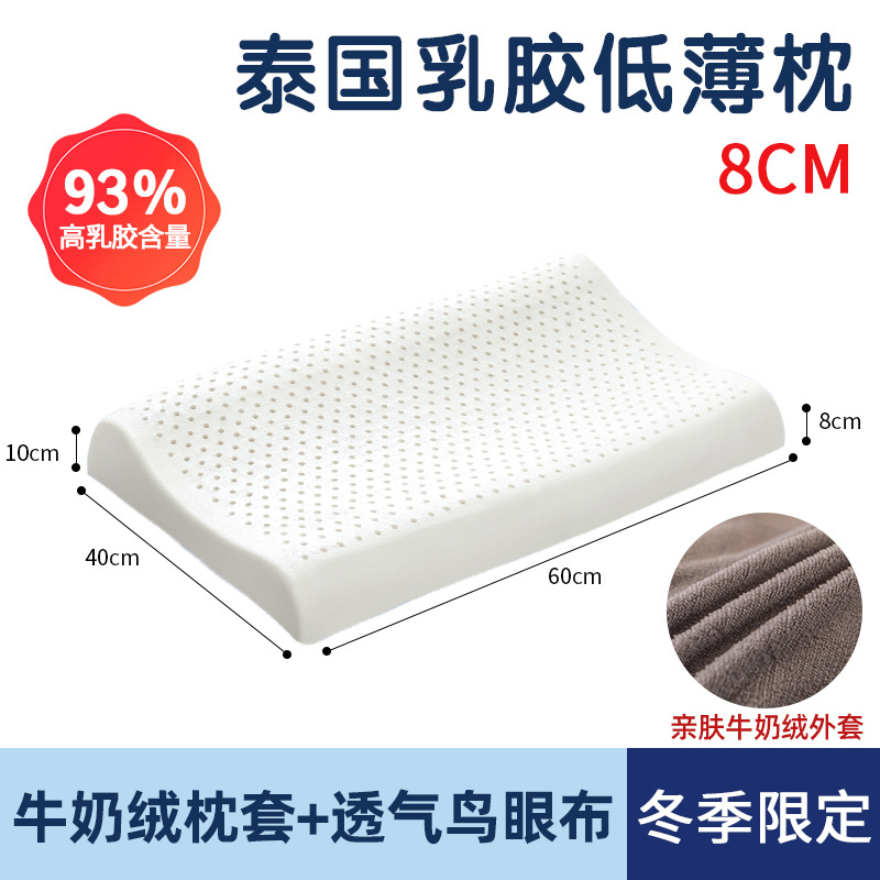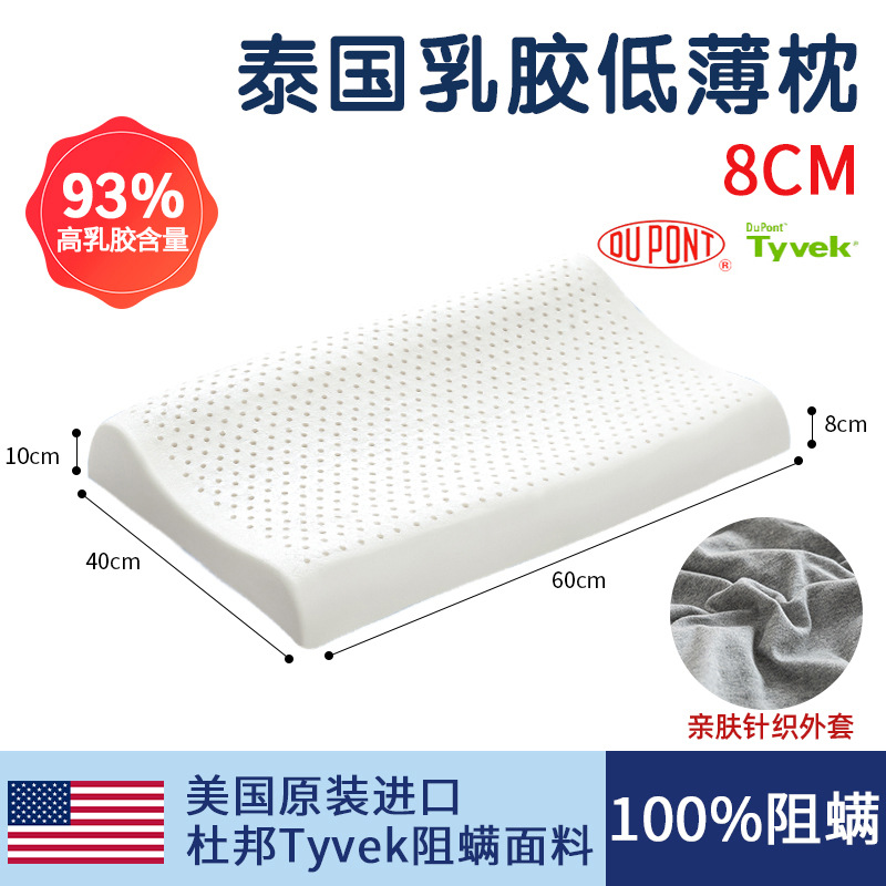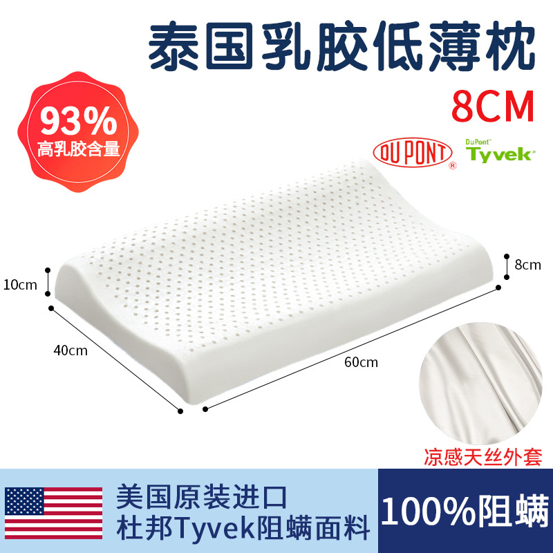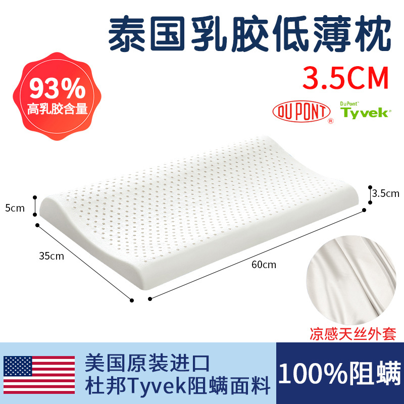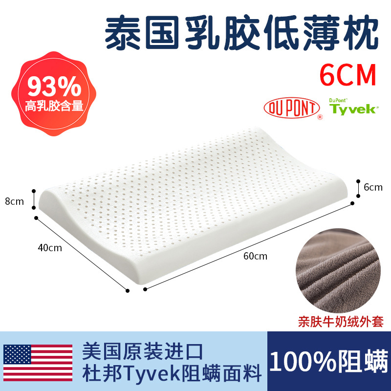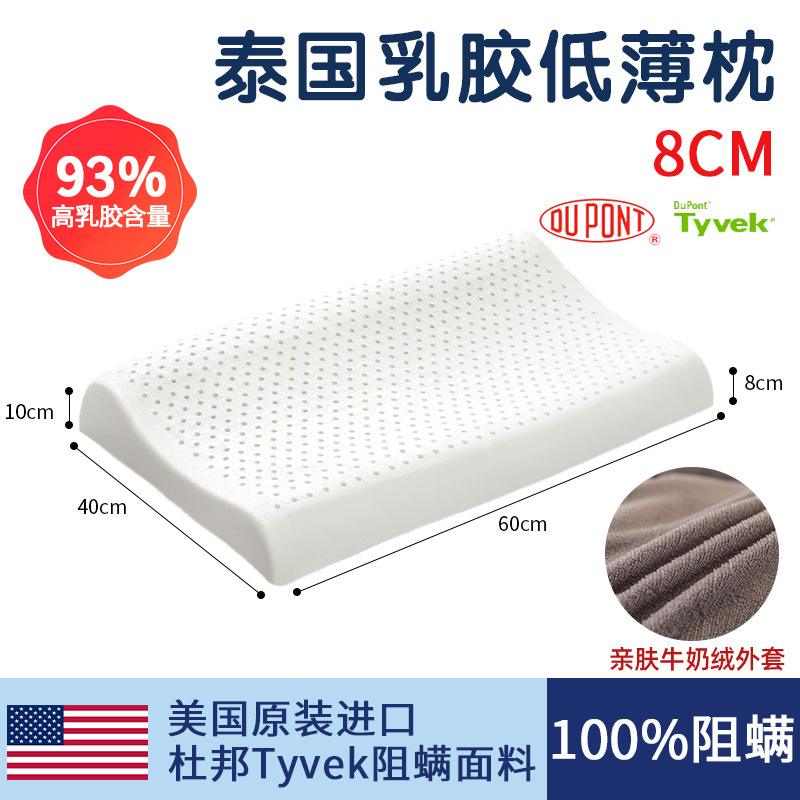 태국 천연 라텍스 베개 남성과 여성을위한 낮은 베개 단일 고무 학생 얇은 베개 코어 낮은 베개는 경추를 보호하고 수면을 돕습니다