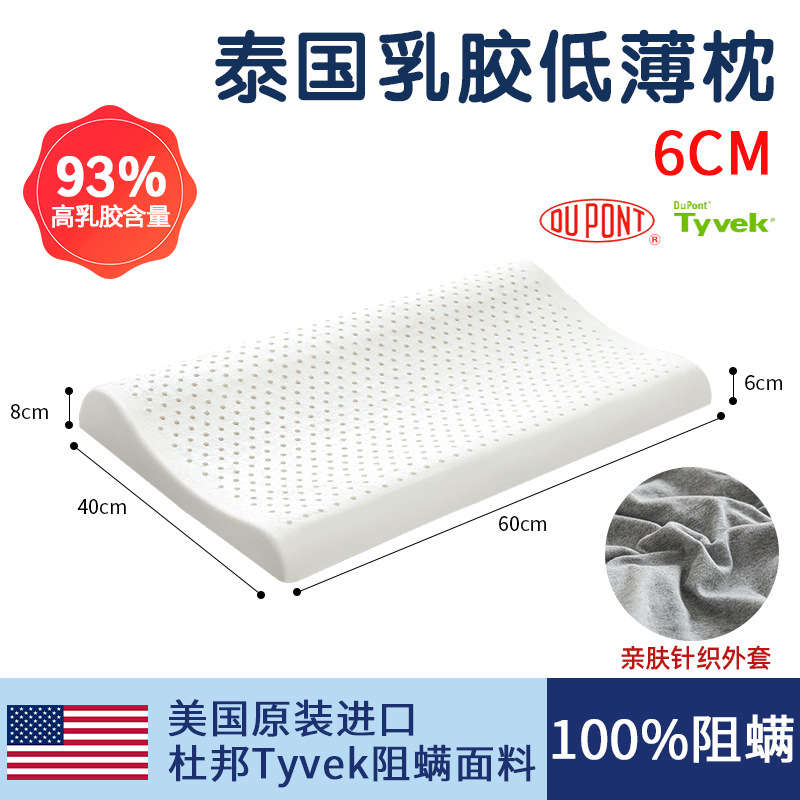 태국 천연 라텍스 베개 남성과 여성을위한 낮은 베개 단일 고무 학생 얇은 베개 코어 낮은 베개는 경추를 보호하고 수면을 돕습니다스토어 가기