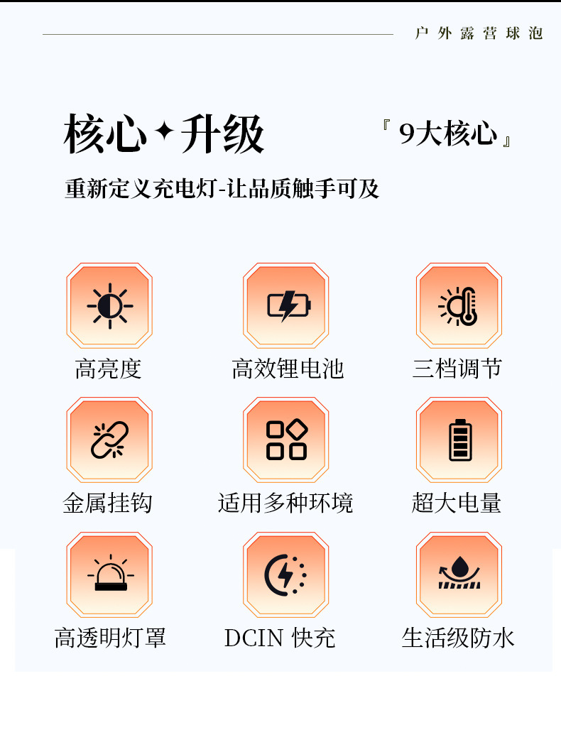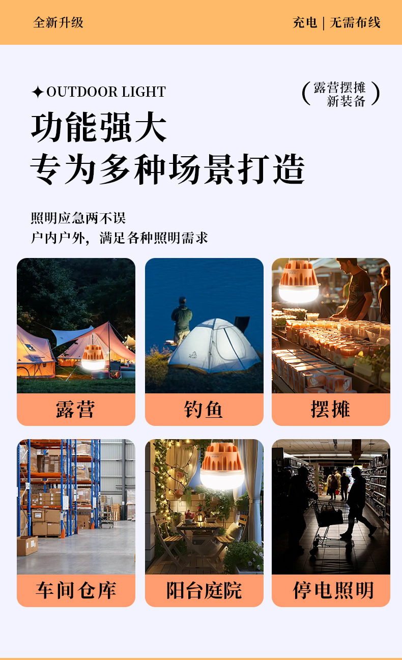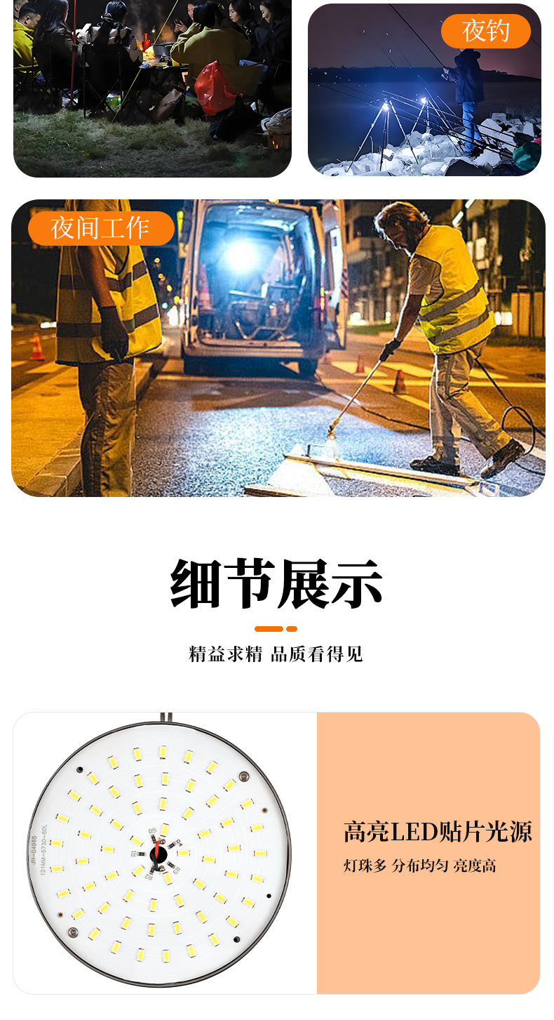 LED 충전식 전구, 야외 야시장 조명, 매점 조명, 비상용 가정용 다기능 조명, 캠프 텐트 조명, 캠핑 조명스토어 가기