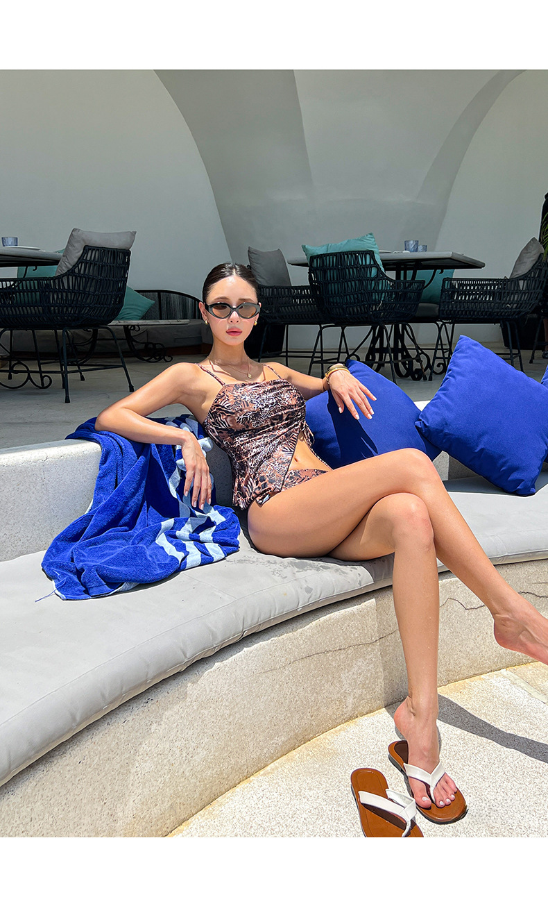 새로운 레오파드 프린트 섹시한 백리스 비치 휴가 발렌타인 데이 요트 파티 스플릿 유럽과 미국의 고품질 수영복스토어 가기