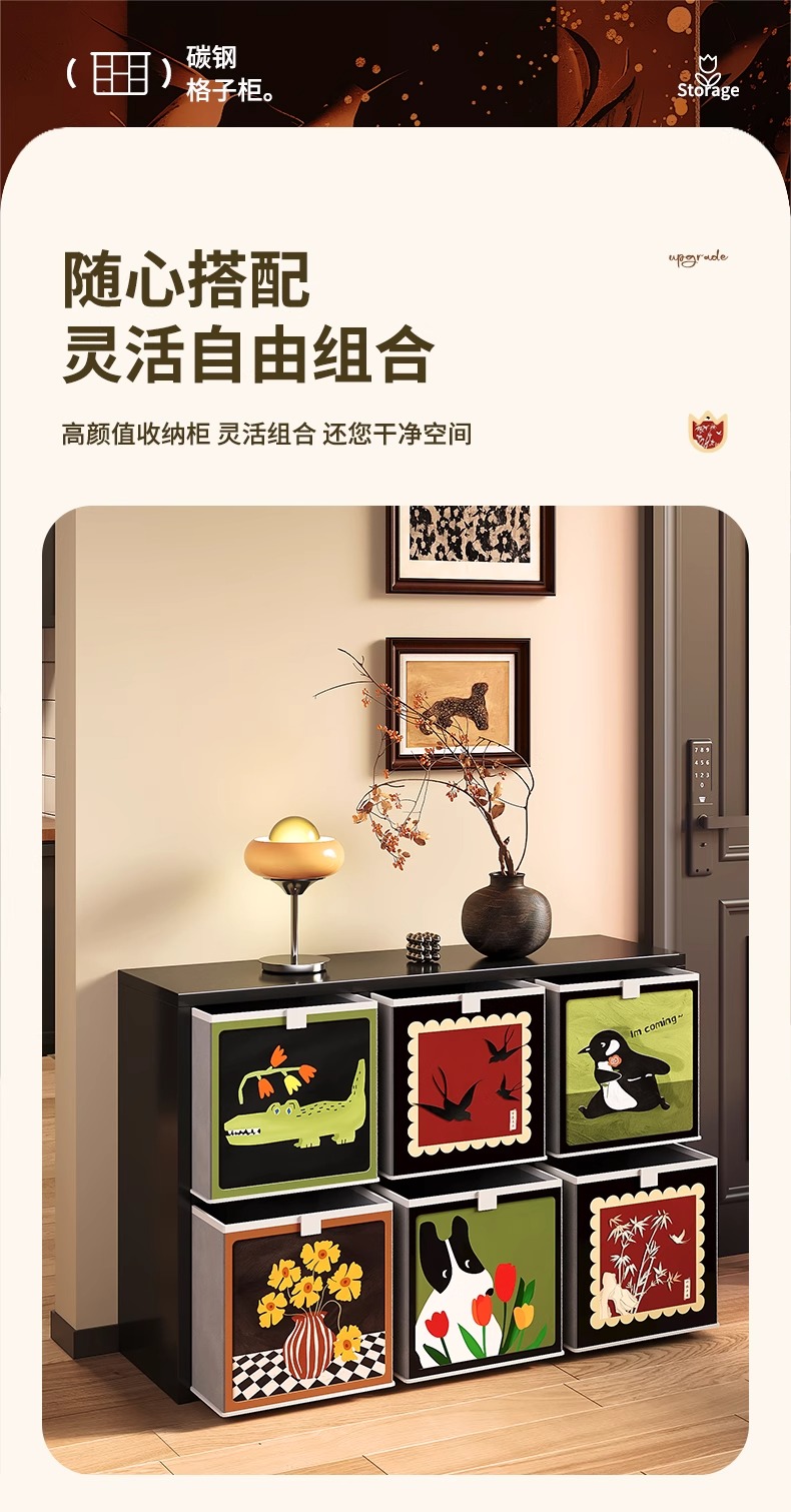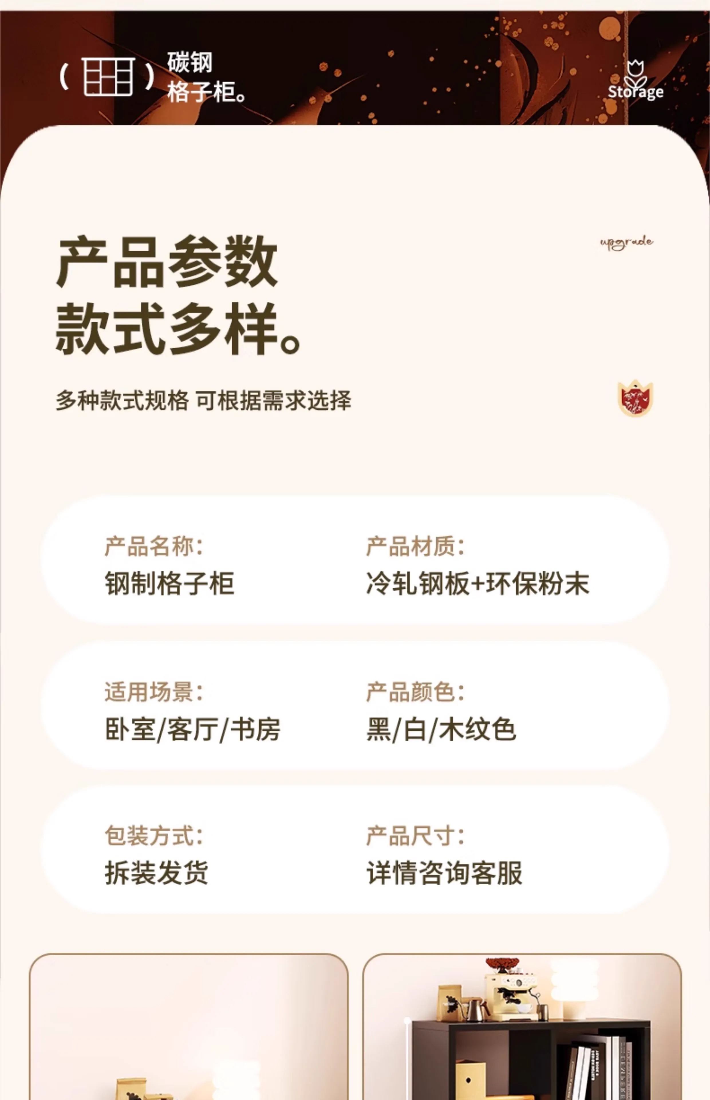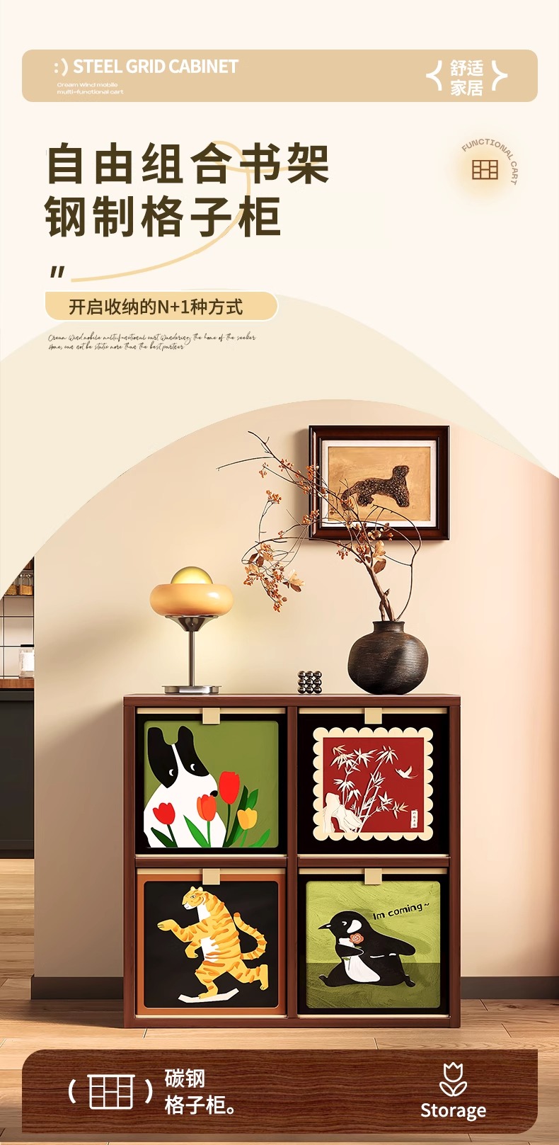 탄소강 연구실 책장 거실 침실 작은 아파트 작은 공간 다기능 강철 Kalake 격자 캐비닛 보관함스토어 가기