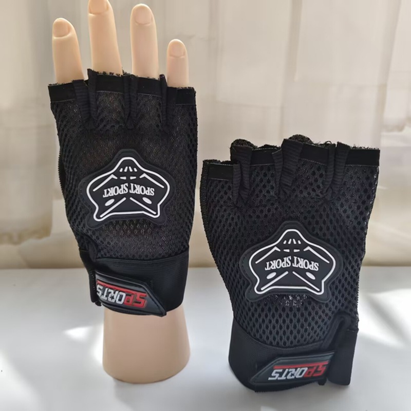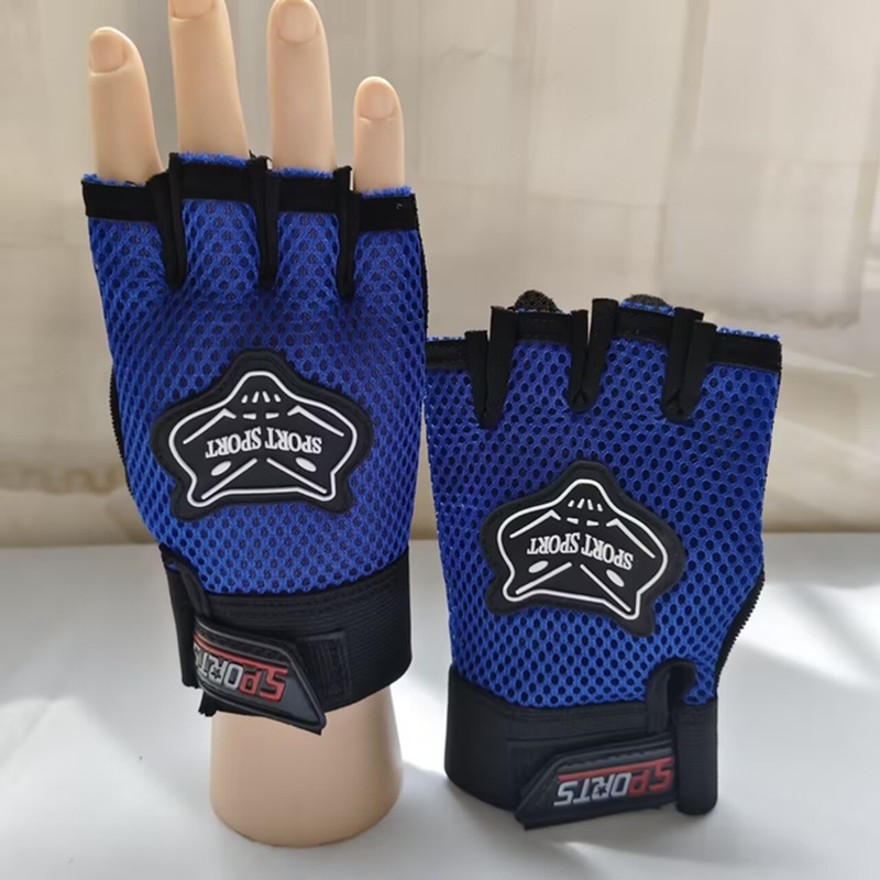 봄과 여름 메쉬 원단 통기성, 미끄럼 방지 및 내마모성 피트니스 철 운동 야외 사이클링 및 등산 반 손가락 장갑스토어 가기