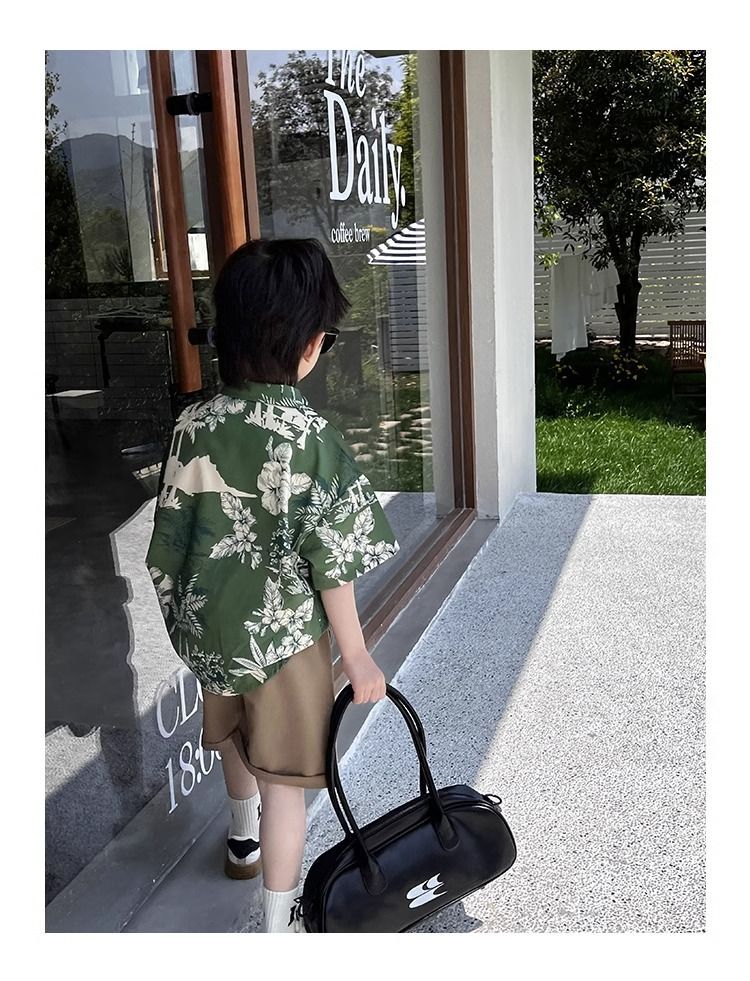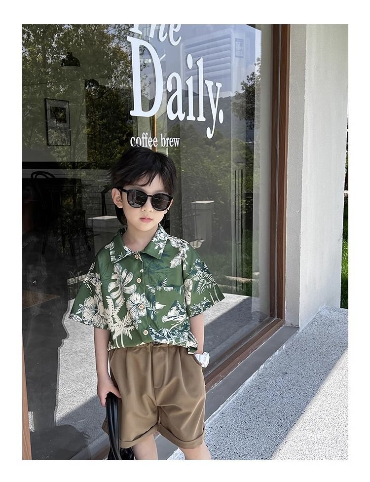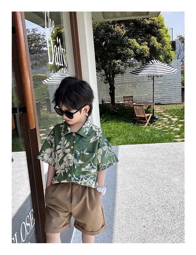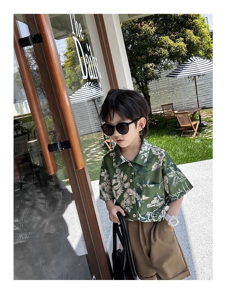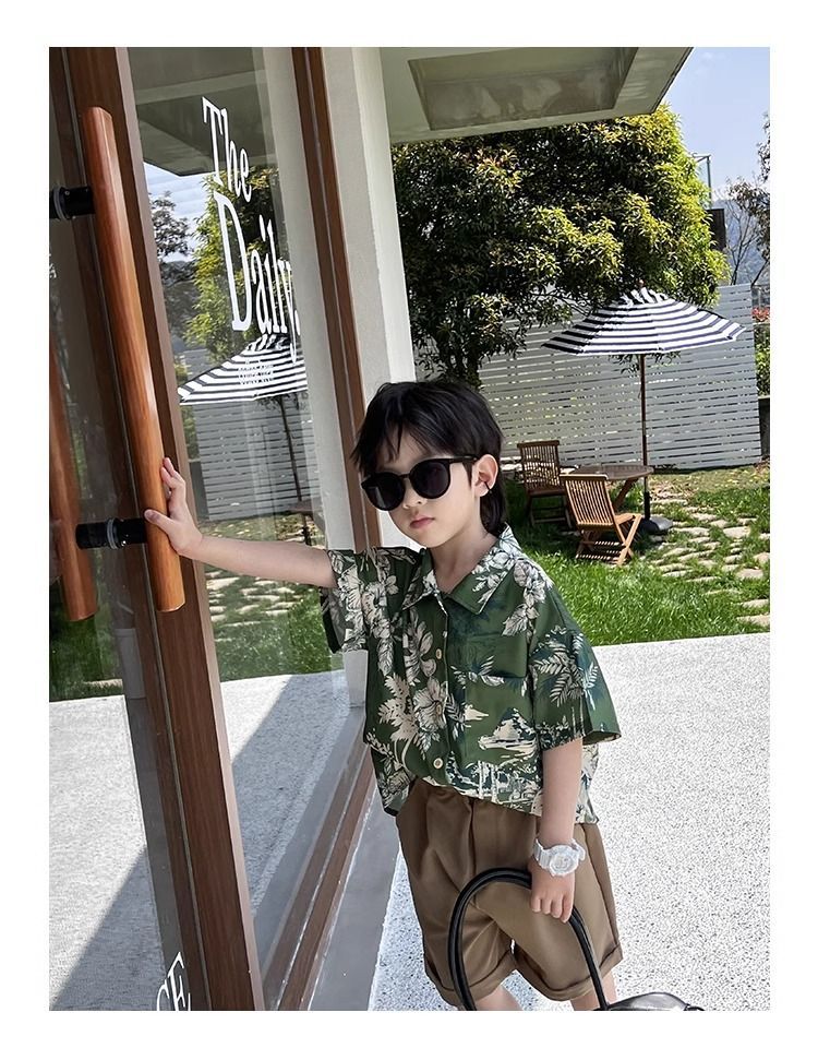 소년 셔츠 여름 얇은 홍콩 스타일 해변 캐주얼 반팔 새로운 휴가 어린이 복고풍 셔츠 유행 아기스토어 가기
