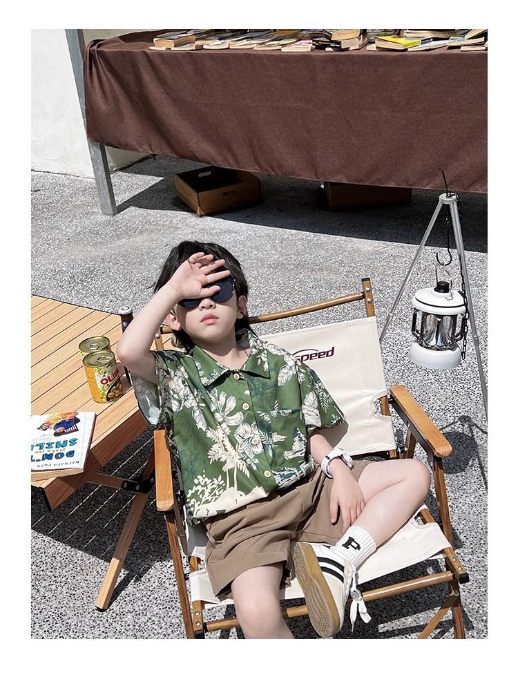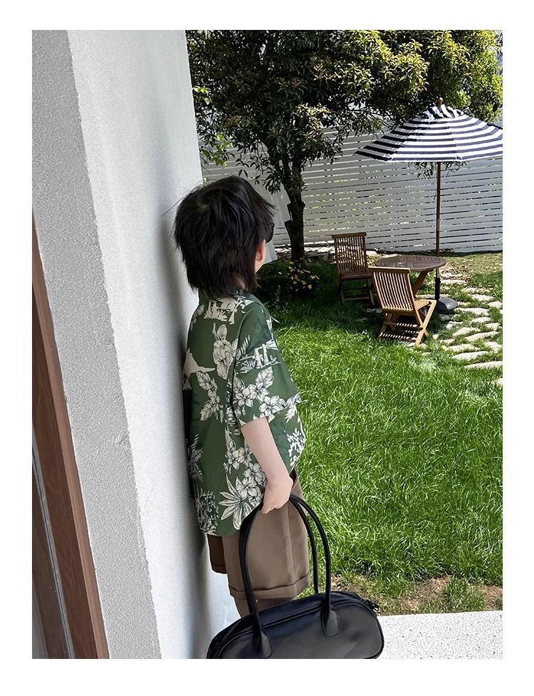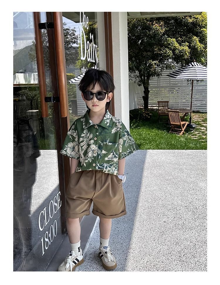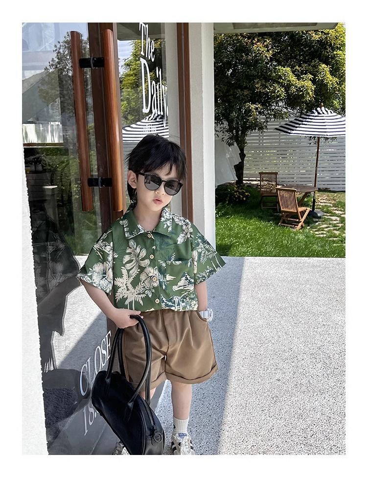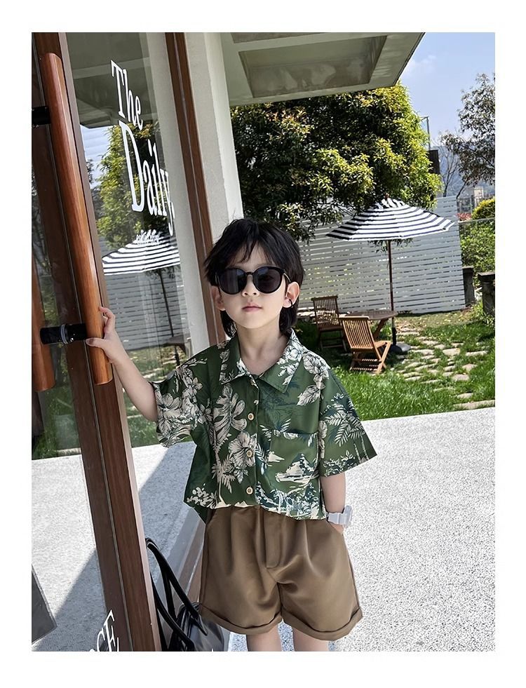 소년 셔츠 여름 얇은 홍콩 스타일 해변 캐주얼 반팔 새로운 휴가 어린이 복고풍 셔츠 유행 아기스토어 가기