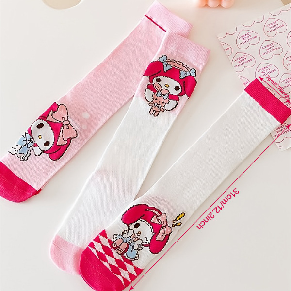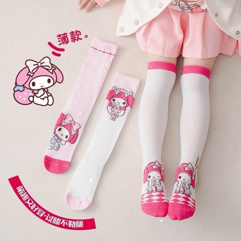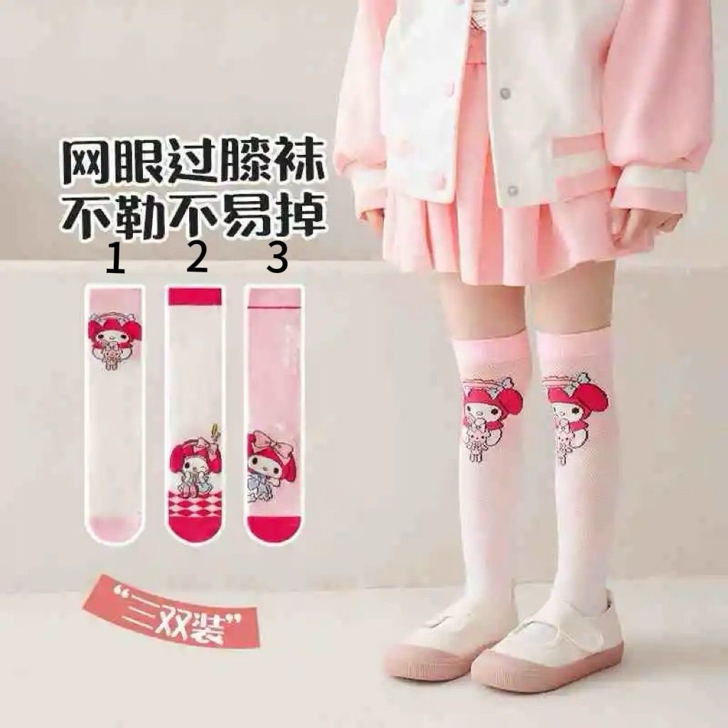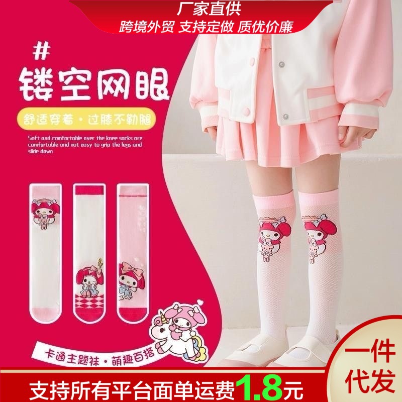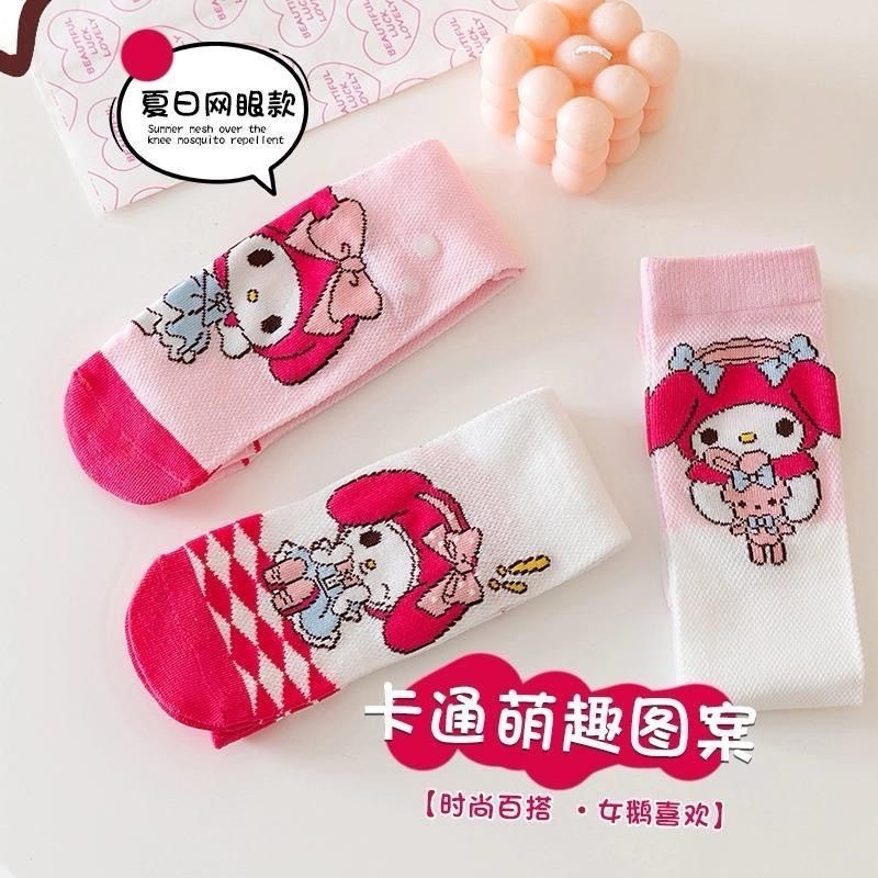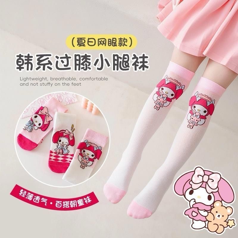 여름 Kuromi 어린이 만화 중간 튜브 양말 소녀 통기성 소녀 얇은 종아리 양말 메쉬 스타킹 여성스토어 가기