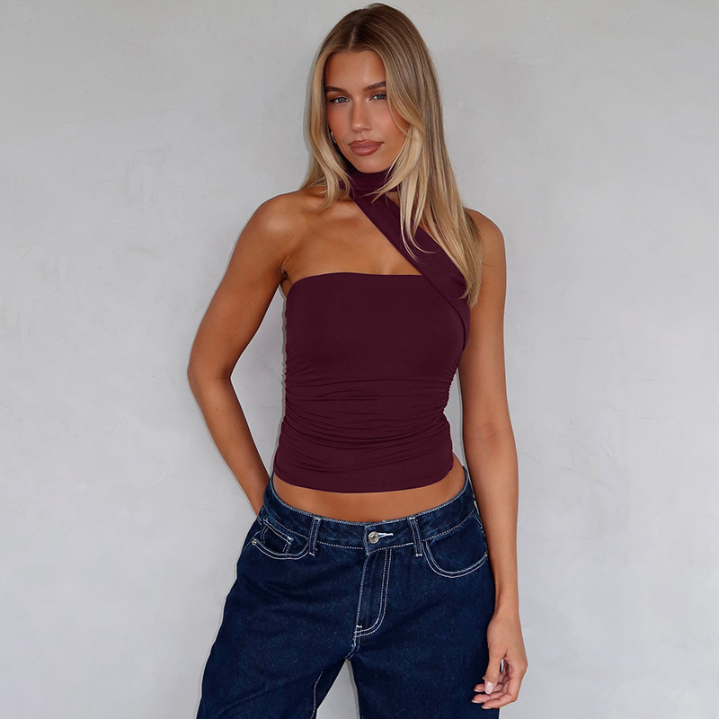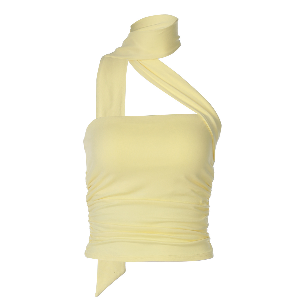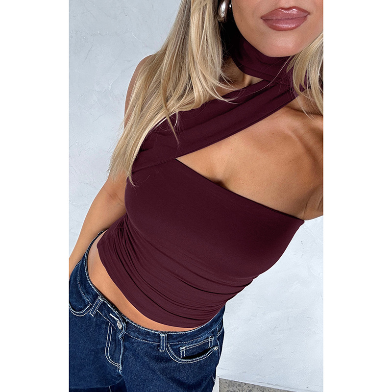 유럽과 미국의 국경 간 여름 새로운 스타일 섹시한 초단단 튜브 탑 스플 라이스 리본 홀터넥 핫 소녀 스타일 솔리드 컬러 랩 탑 여성용