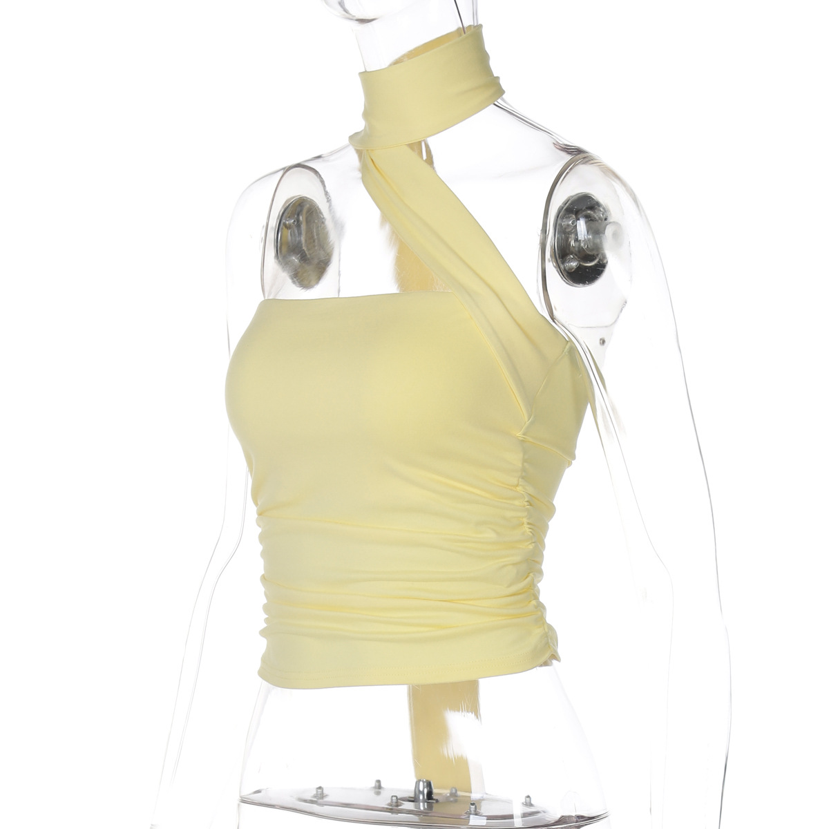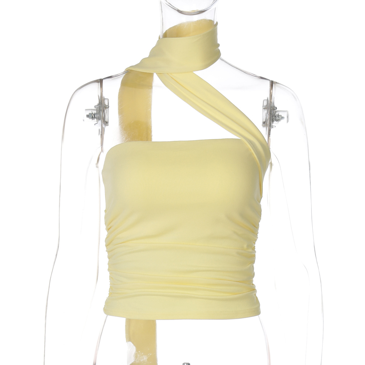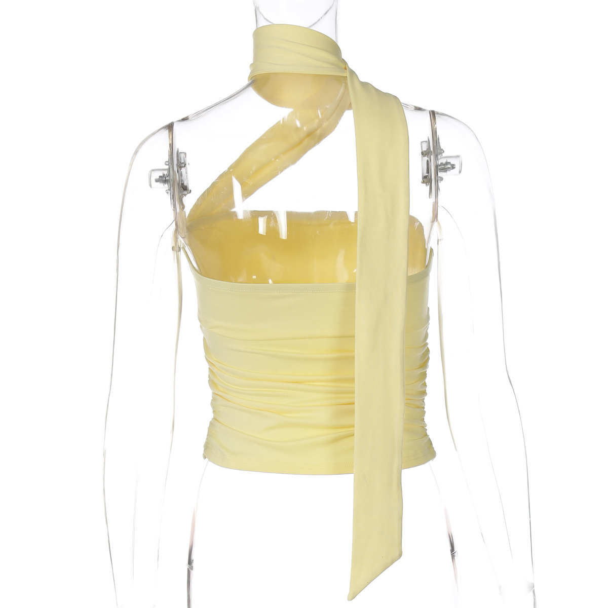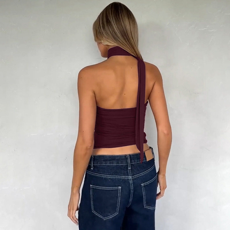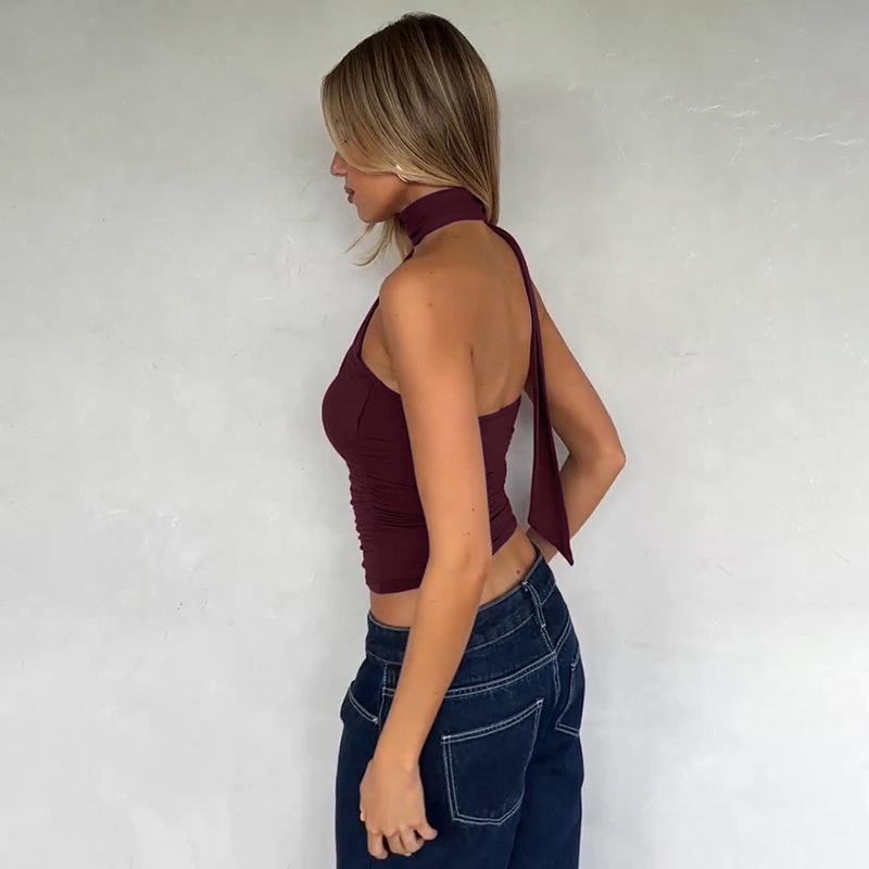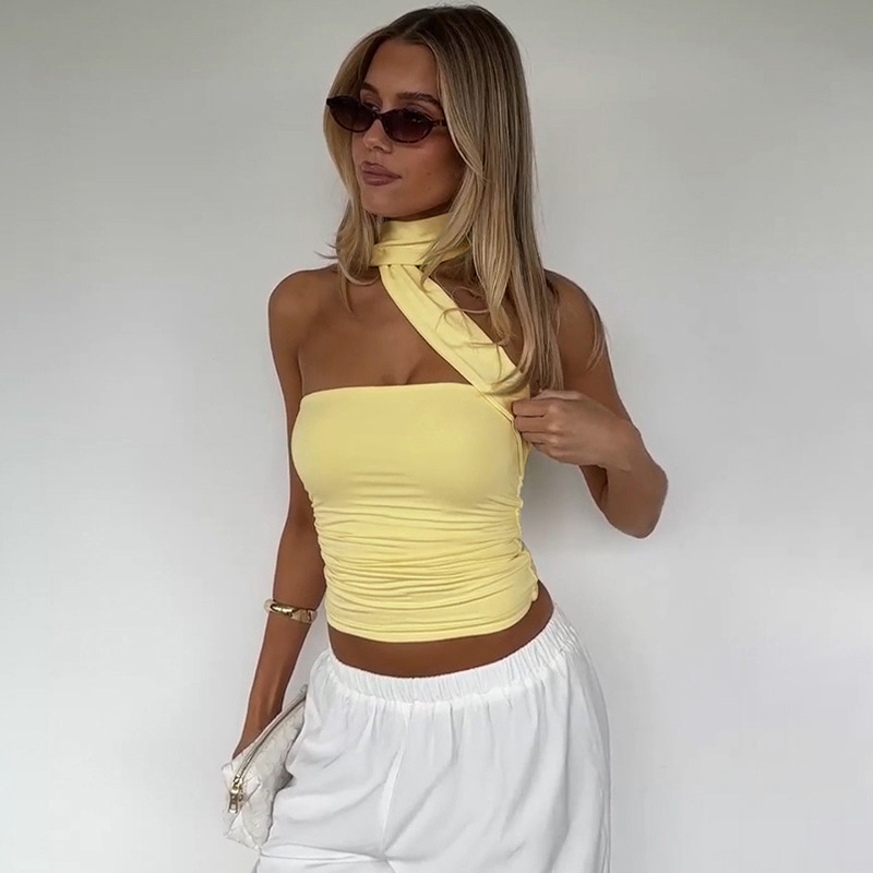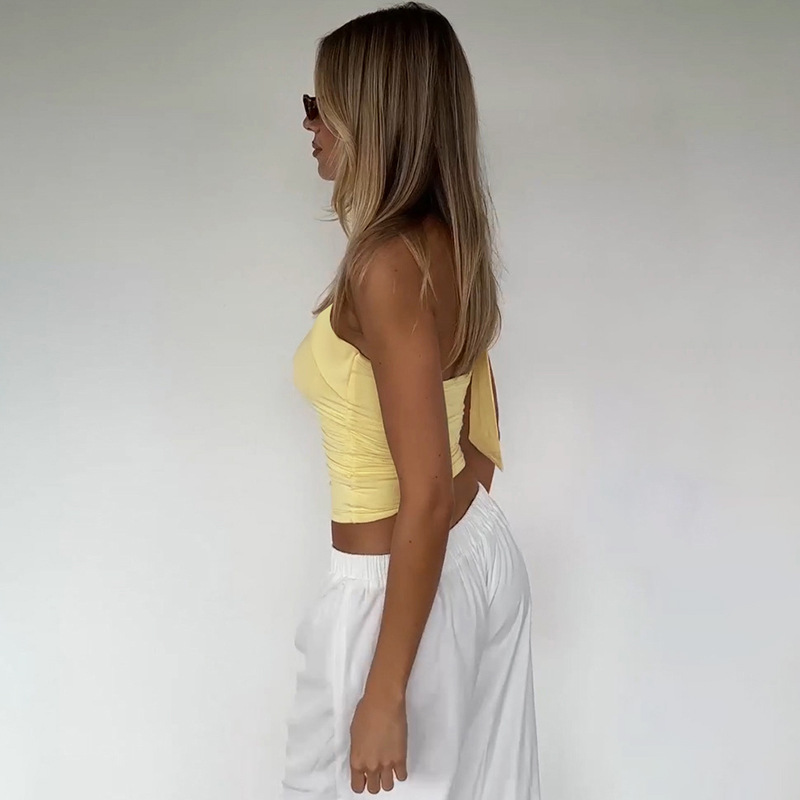 유럽과 미국의 국경 간 여름 새로운 스타일 섹시한 초단단 튜브 탑 스플 라이스 리본 홀터넥 핫 소녀 스타일 솔리드 컬러 랩 탑 여성용스토어 가기