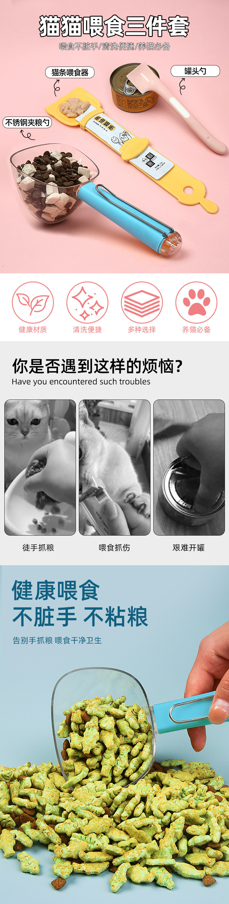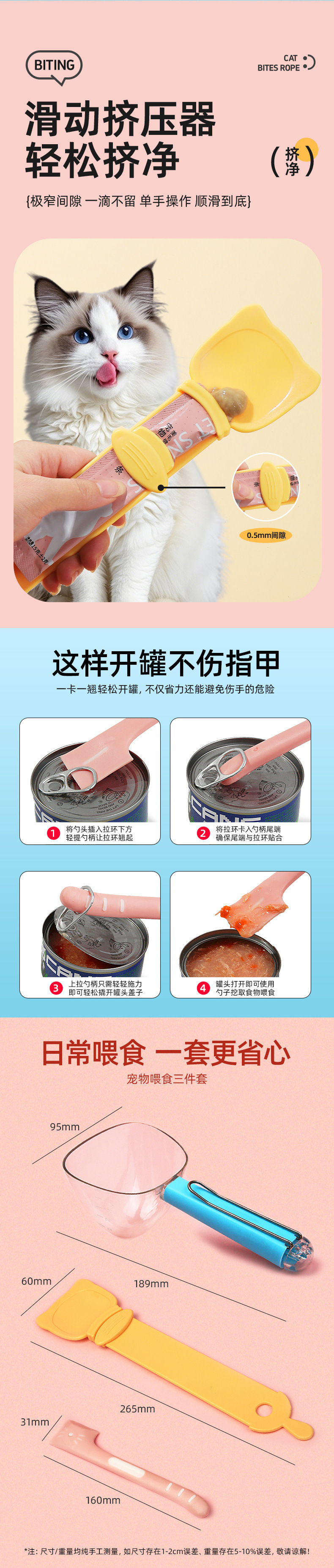 애완동물 먹이 세트, 고양이 스트립 피더, 고양이 사료 스푼, 통조림 스푼, 압출 계량 도구, 고양이 용품스토어 가기