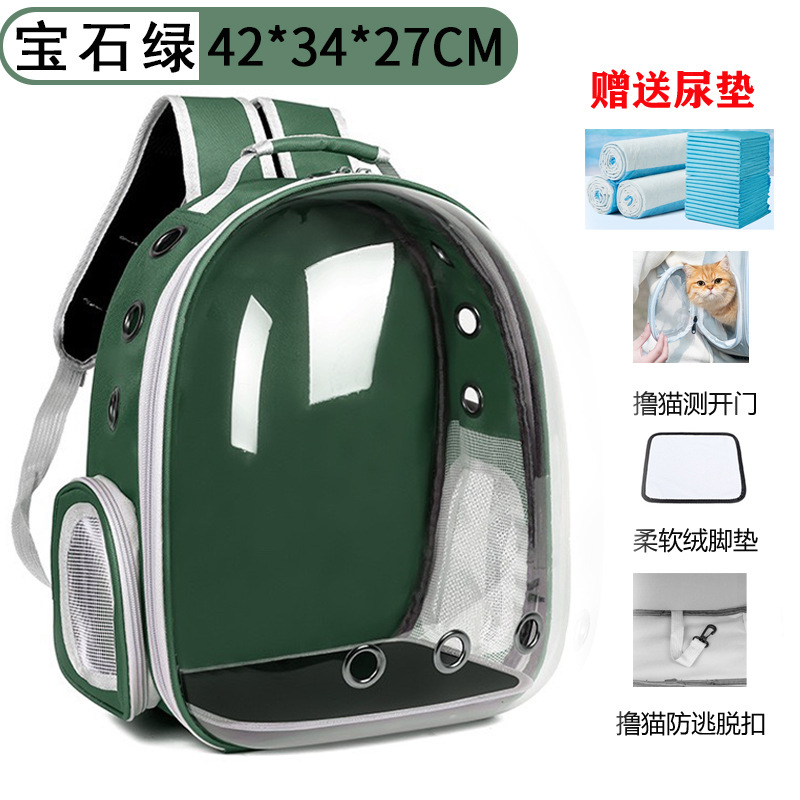 • 0-9kg 애완동물용 범용(사이즈 참고 옵션 사진) 측면 개구부가 있는 파노라마 뷰 ★ 녹색 교환 패드 2개