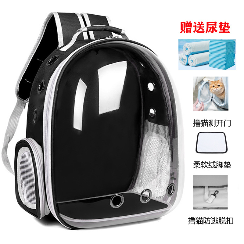 • 0-9kg 애완동물용 범용(사이즈 참고 옵션 사진) 측면 개구부가 있는 파노라마 뷰 ★ 검정색 교환 패드 2개