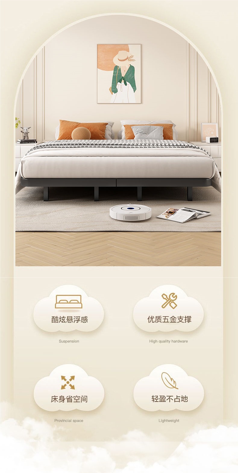 일본식 심플한 침대 없는 공중부양 침대 선반, 가정용 철제 침대, 두꺼운 싱글 및 더블 철제 선반 침대스토어 가기