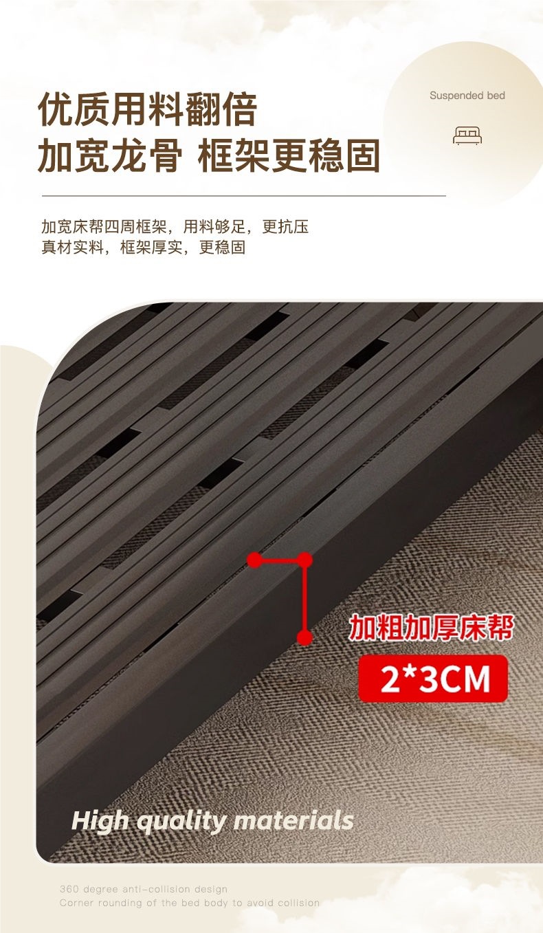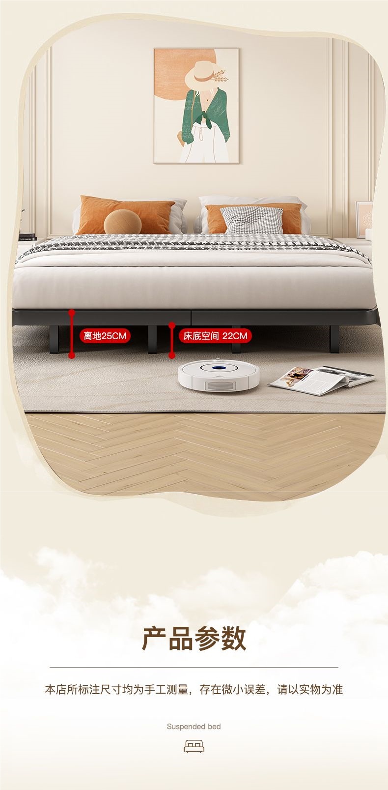 일본식 심플한 침대 없는 공중부양 침대 선반, 가정용 철제 침대, 두꺼운 싱글 및 더블 철제 선반 침대
