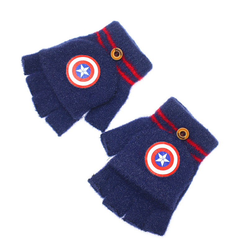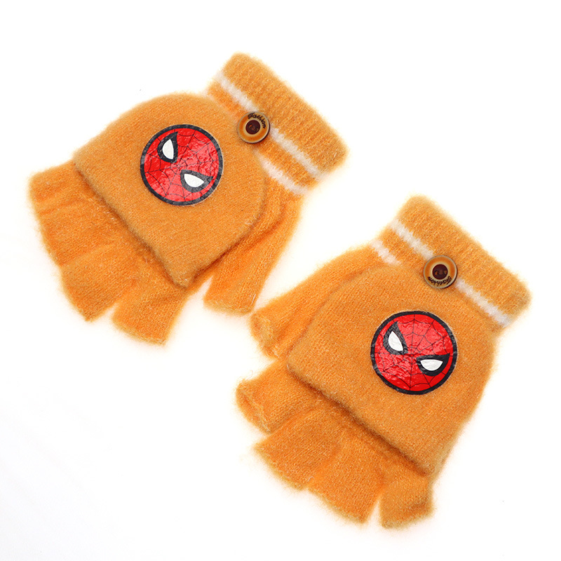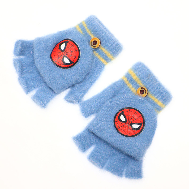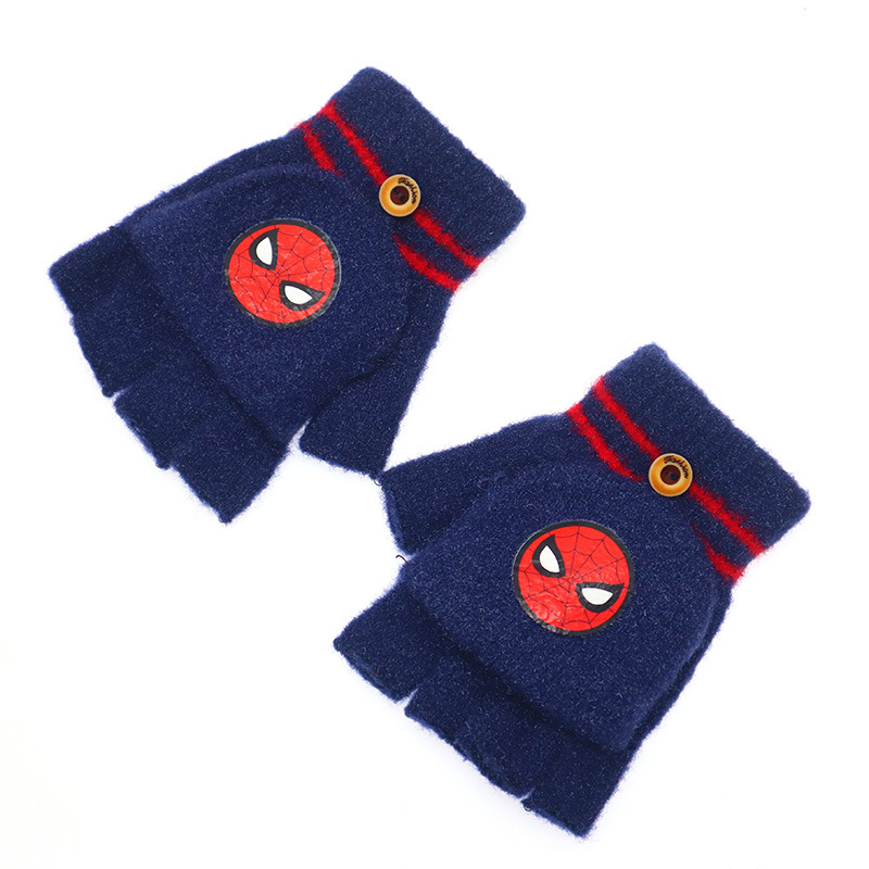 애니메이션 스파이더 맨 장갑 소년 겨울 만화 따뜻한 슈퍼 소프트 크리스탈 원사 손가락 플립 핸드 글러브