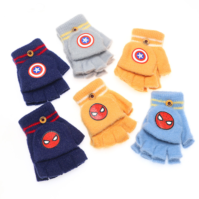 애니메이션 스파이더 맨 장갑 소년 겨울 만화 따뜻한 슈퍼 소프트 크리스탈 원사 손가락 플립 핸드 글러브스토어 가기