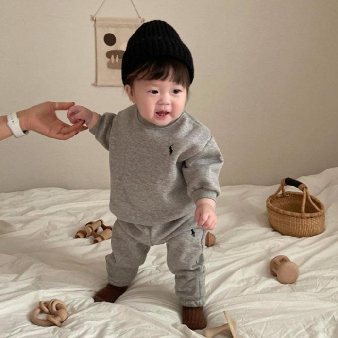 [속보] 아동복 봄, 가을, 겨울 베이비 상의와 팬츠 투피스 세트 아기 스플릿 슈트스토어 가기