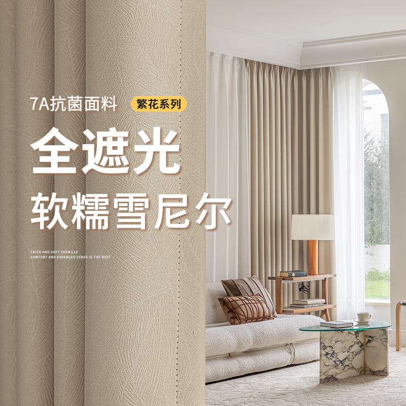 거실 항균 커튼 라이트 럭셔리 현대 미니멀리스트 침실 완전 차광 2024 새로운 프랑스 하이 엔드 셔닐 차양스토어 가기