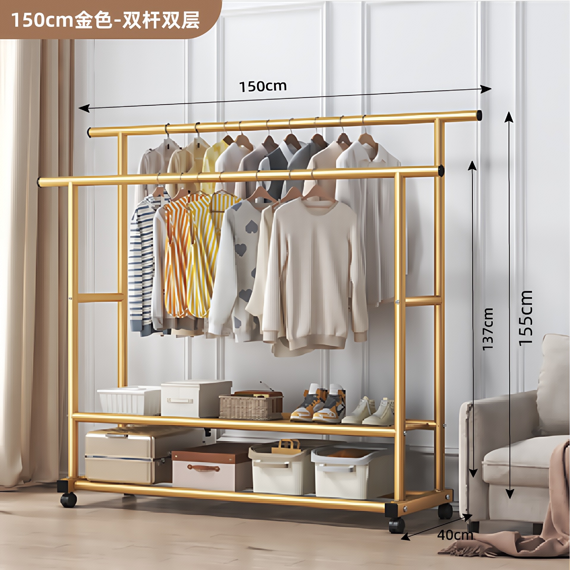 • 더블 레이어 더블 폴 사이드 수납망 150 골드 + 휠