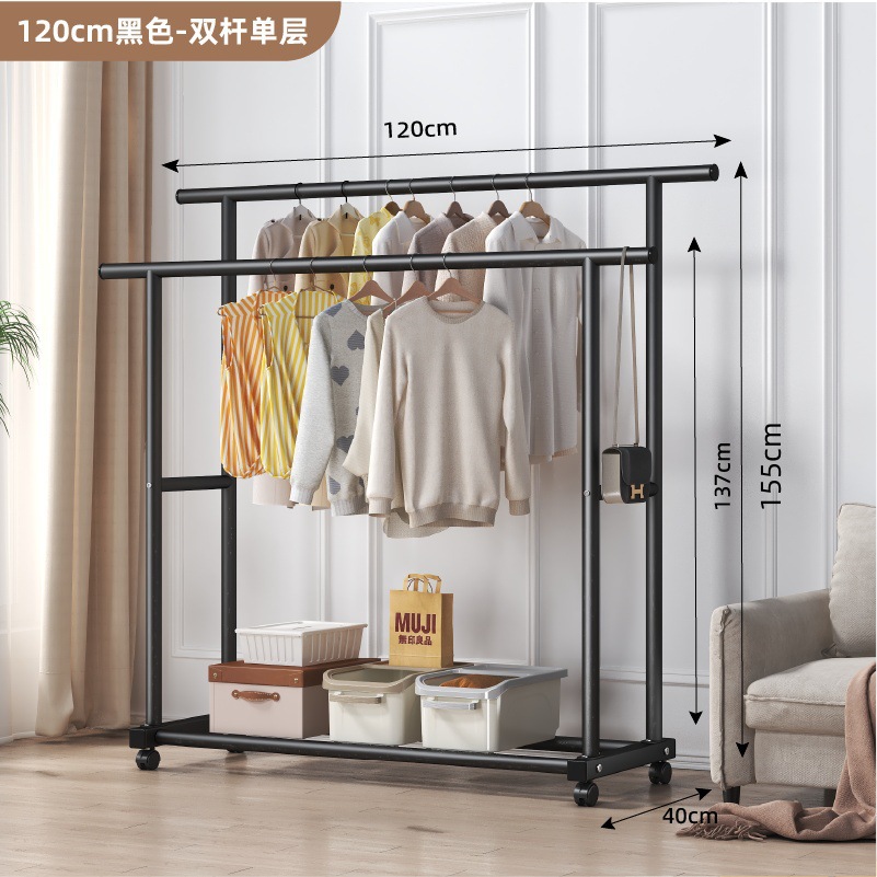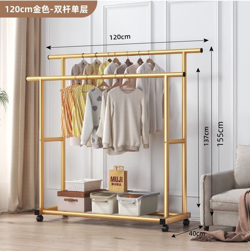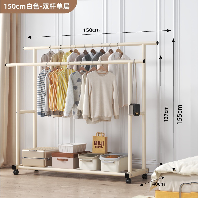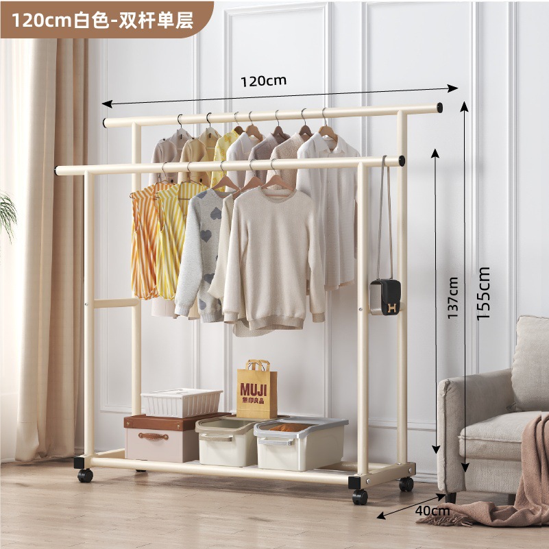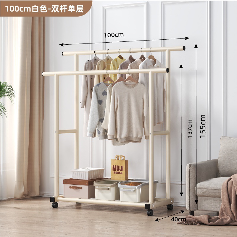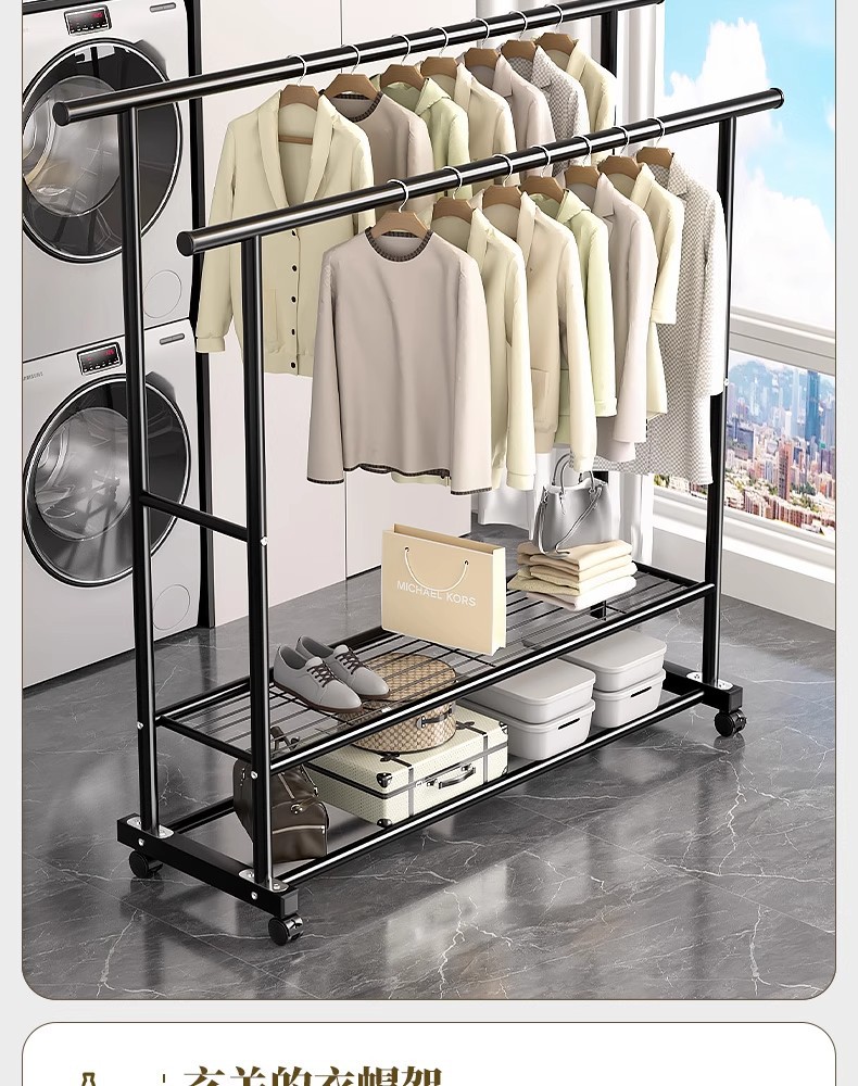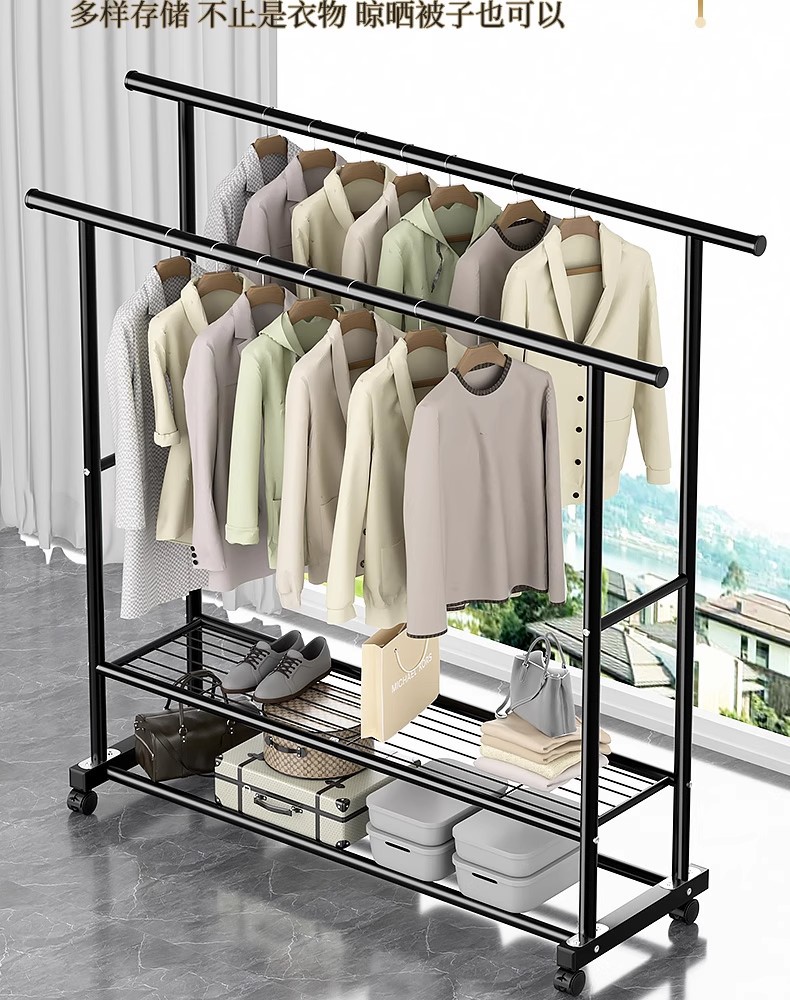 두꺼운 이중 막대 이동식 기숙사 옷걸이, 두꺼운 옷걸이, 바닥에서 천장까지 올려진 수직 가정용 침실 발코니 옷걸이, 간단함스토어 가기