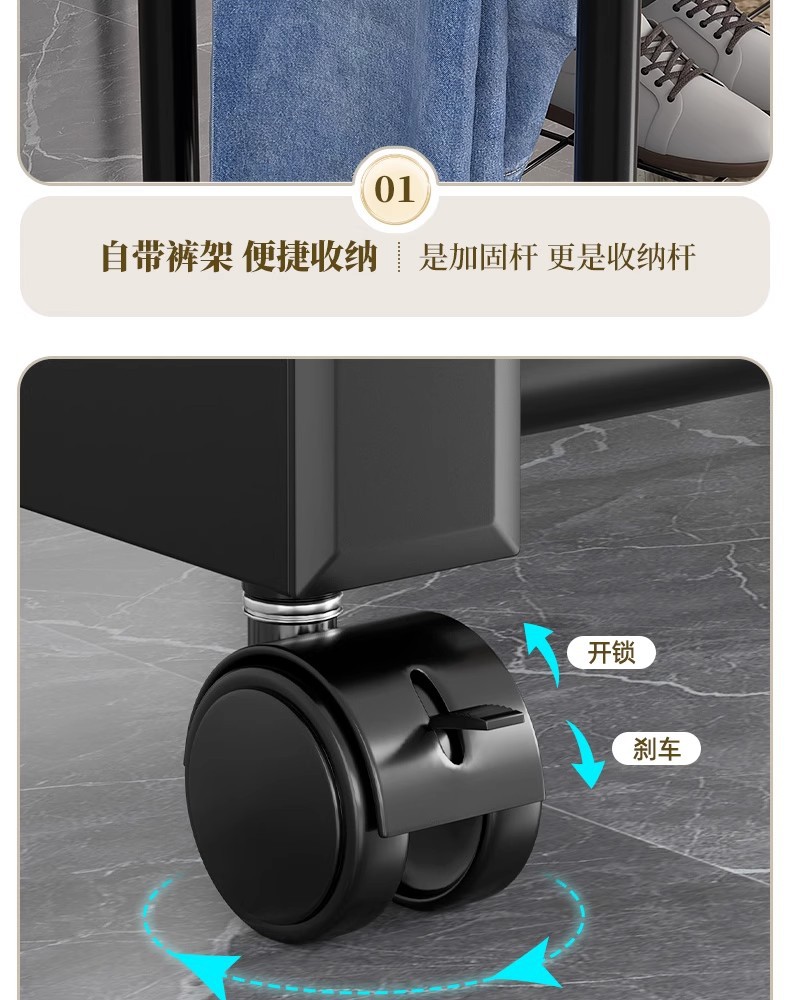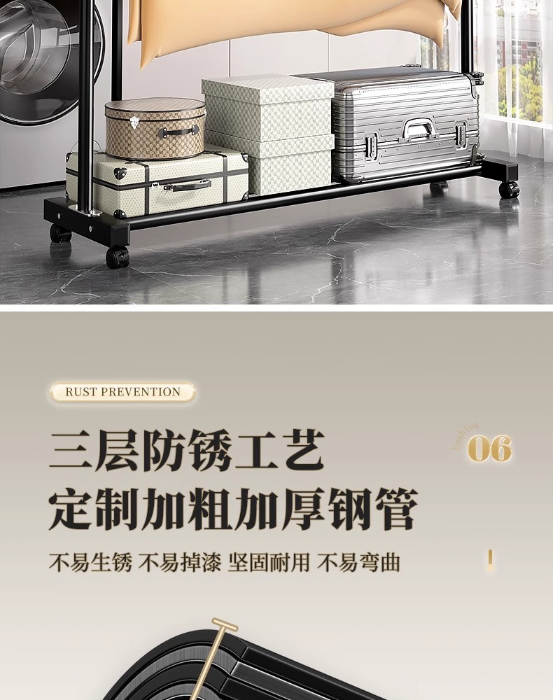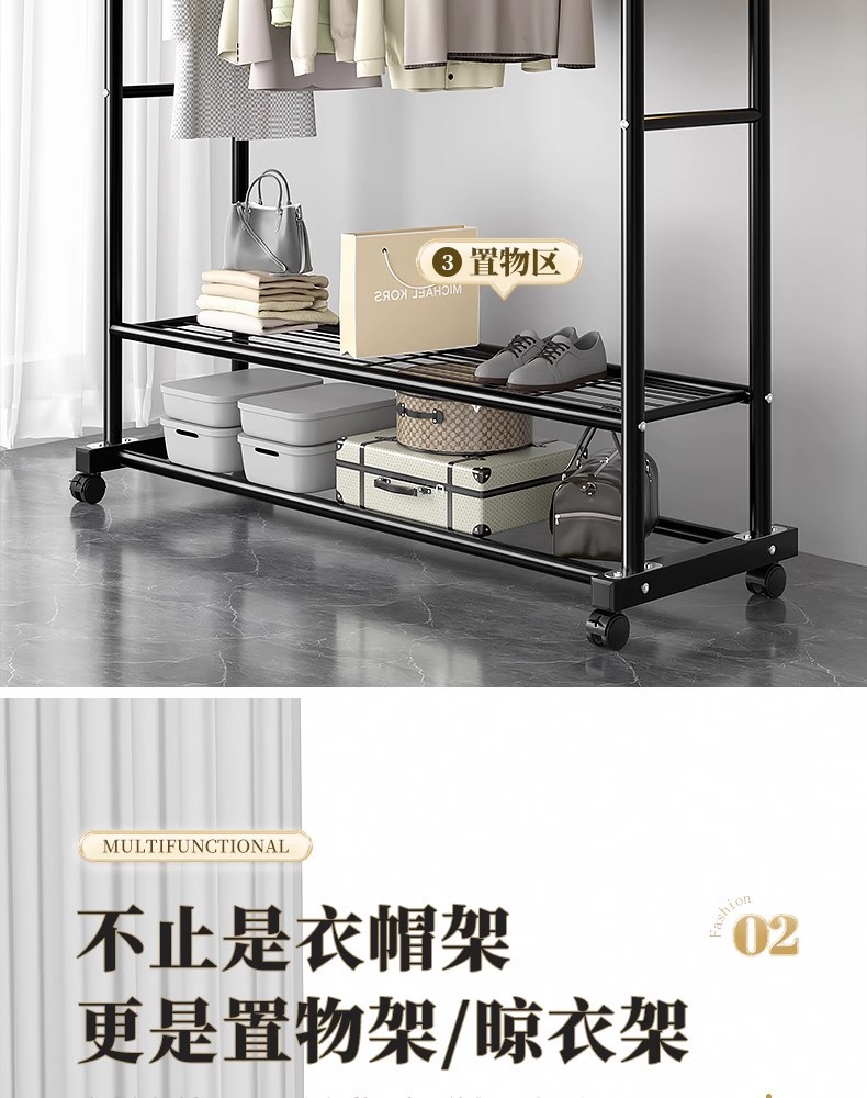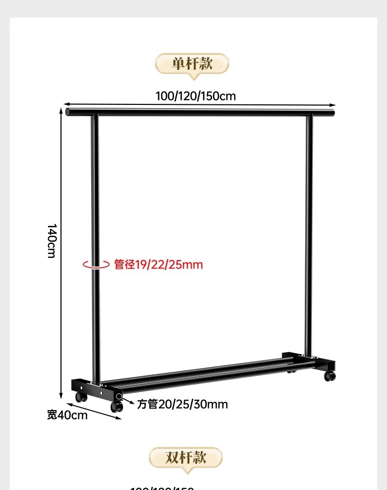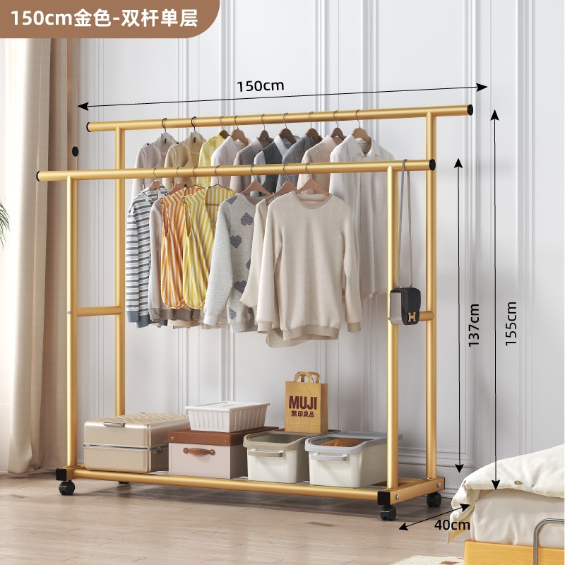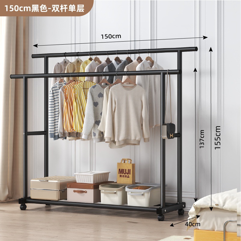 두꺼운 이중 막대 이동식 기숙사 옷걸이, 두꺼운 옷걸이, 바닥에서 천장까지 올려진 수직 가정용 침실 발코니 옷걸이, 간단함스토어 가기