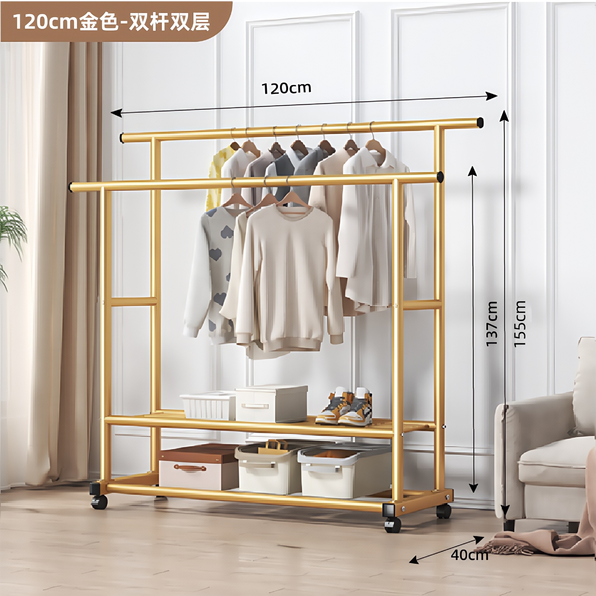 • 더블 레이어 더블 폴 사이드 수납망 120 골드 + 휠