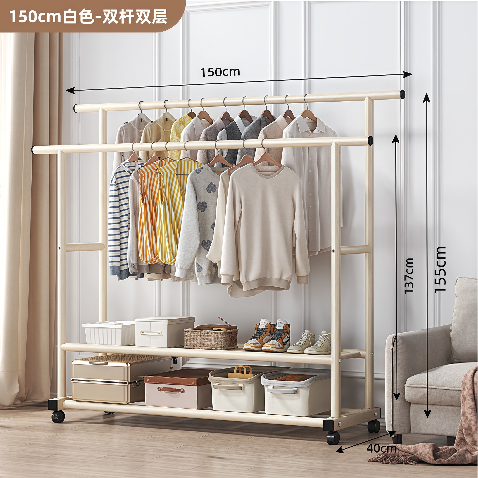 • 더블 레이어 더블 폴 사이드 수납망 150 화이트 + 휠