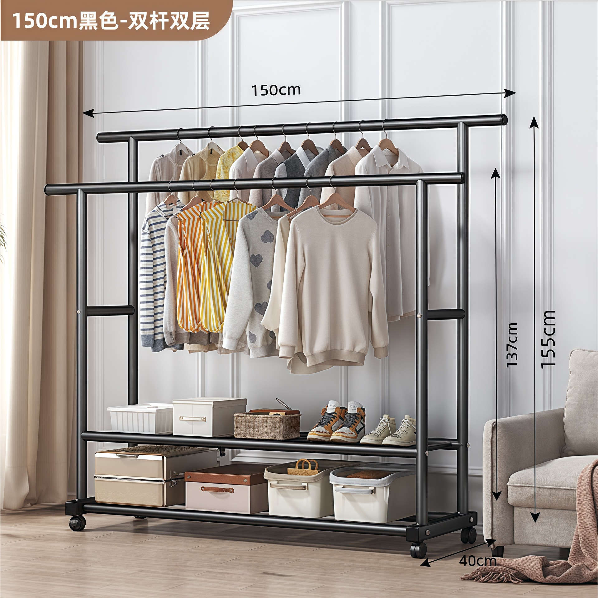• 더블 레이어 더블 폴 사이드 수납망 150 블랙 + 휠