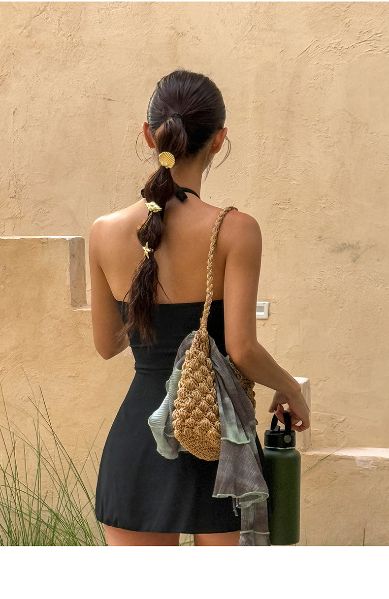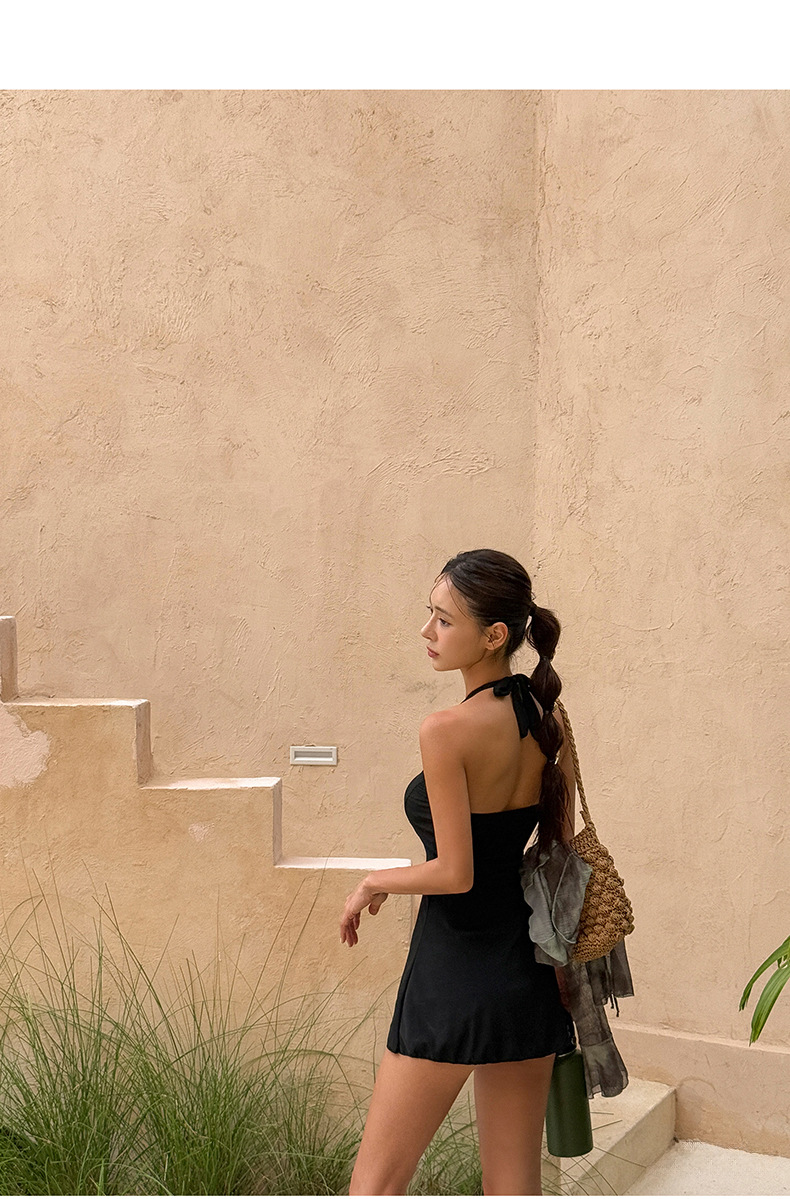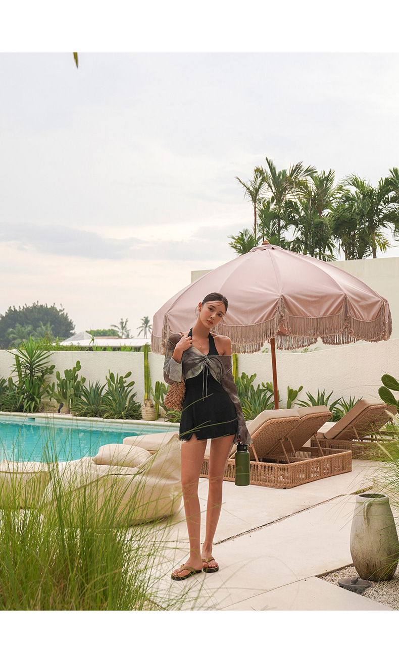 투피스 세트 2025 한국 신형 온천 크로스보더 슬리밍 드로스트링 타이 염색 블라우스 원피스 수영복 여성용 긴팔 자외선 차단