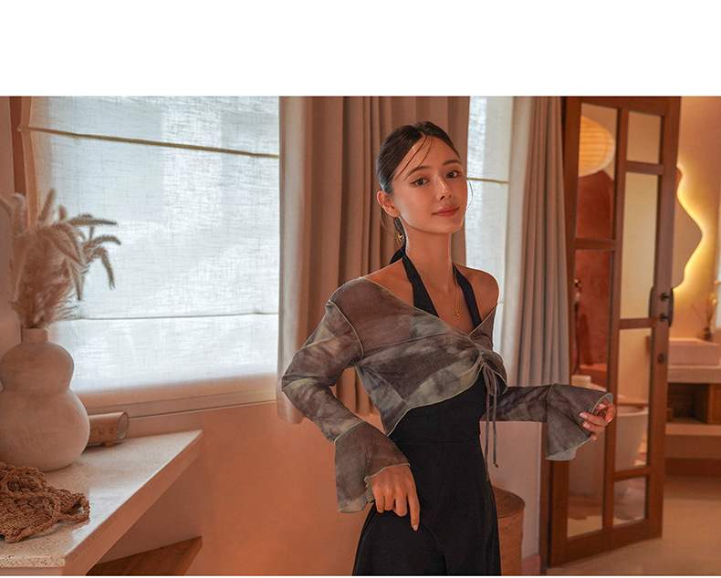 투피스 세트 2025 한국 신형 온천 크로스보더 슬리밍 드로스트링 타이 염색 블라우스 원피스 수영복 여성용 긴팔 자외선 차단스토어 가기