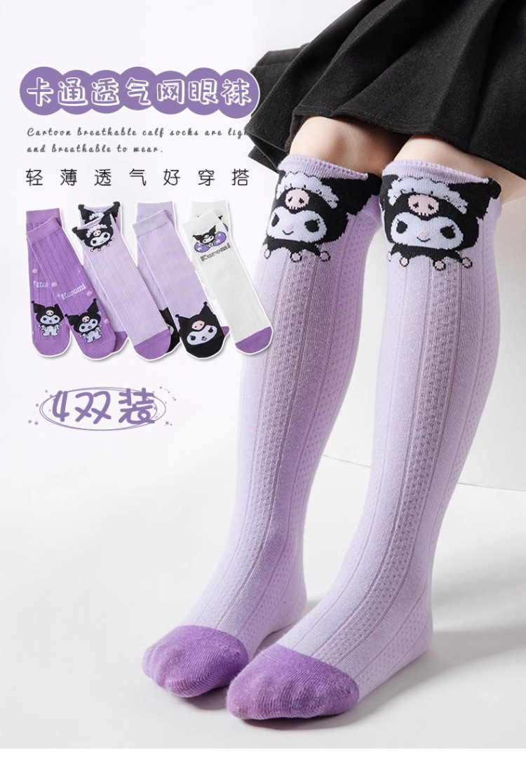 [인기 스타일] 여름 소녀 만화 쿠로미 얇은 통기성 땀 흡수 스타킹 어린이 양말 메쉬 종아리 양말스토어 가기