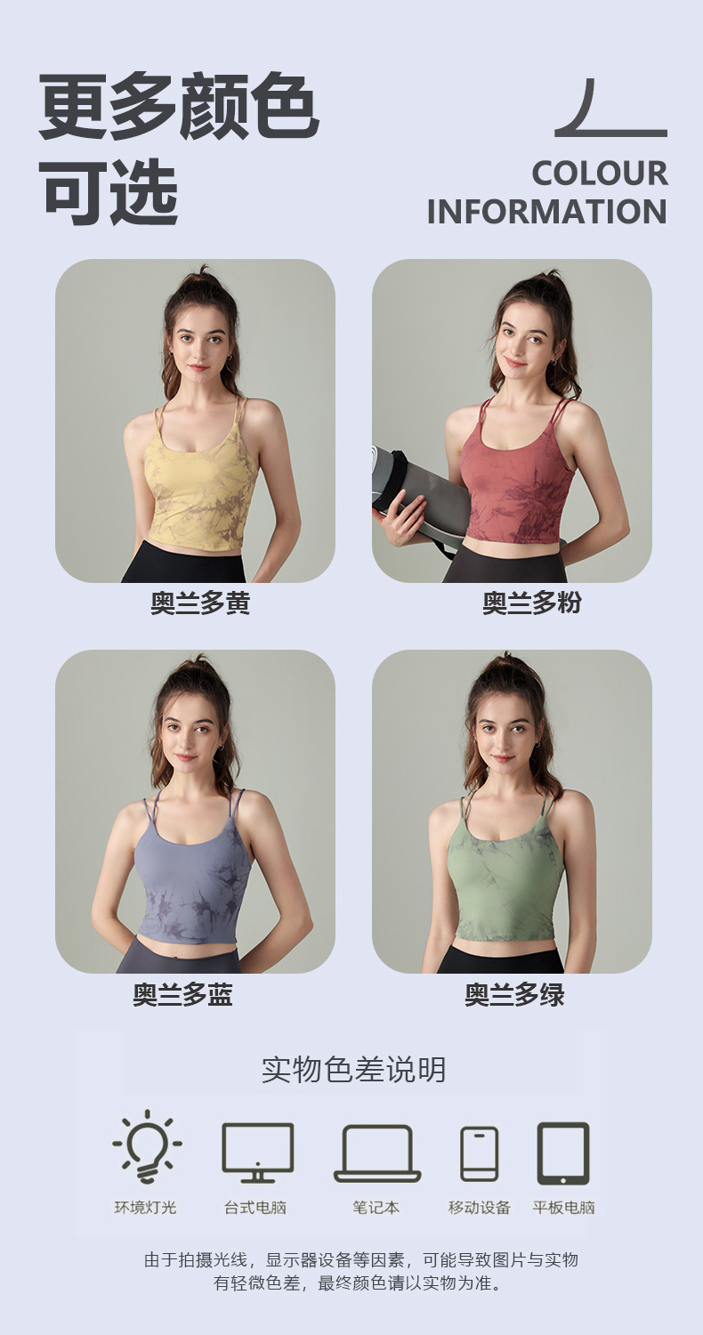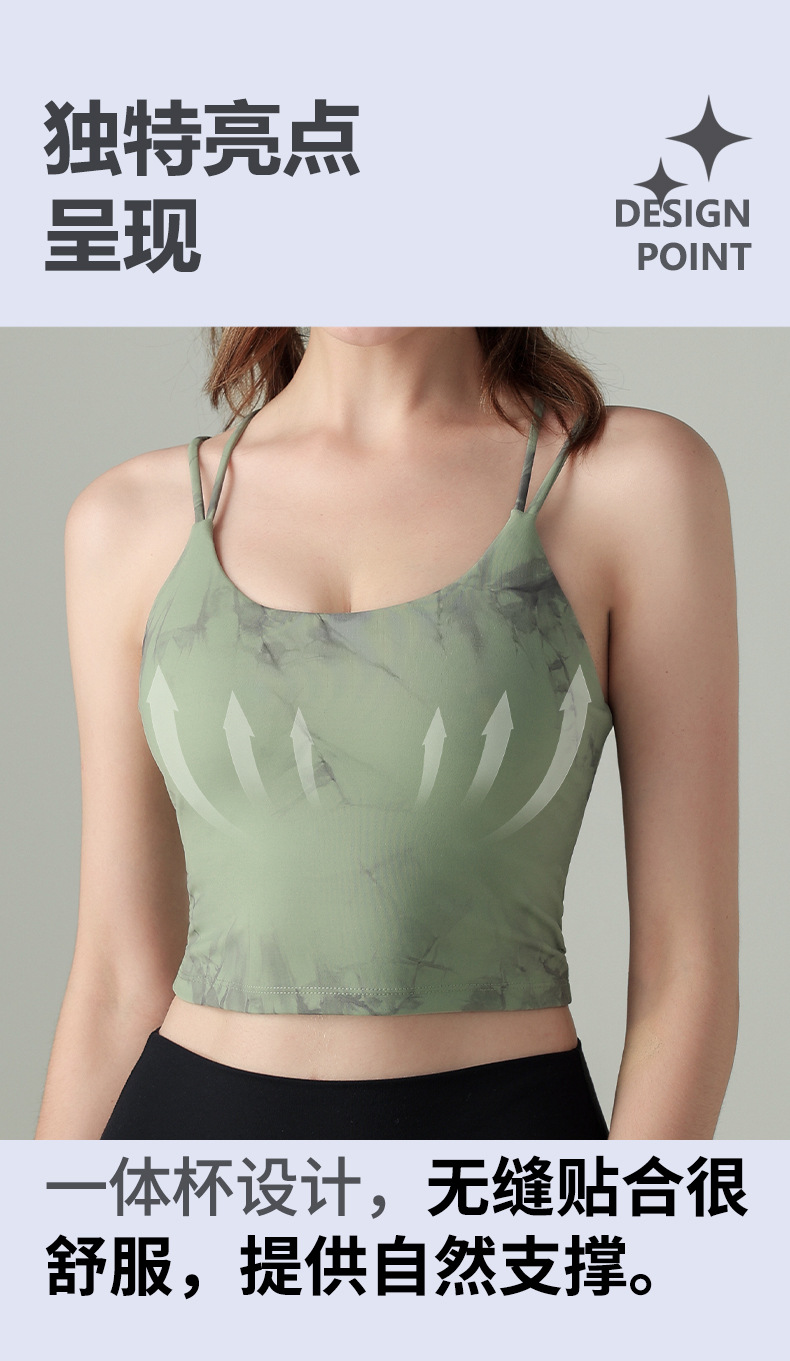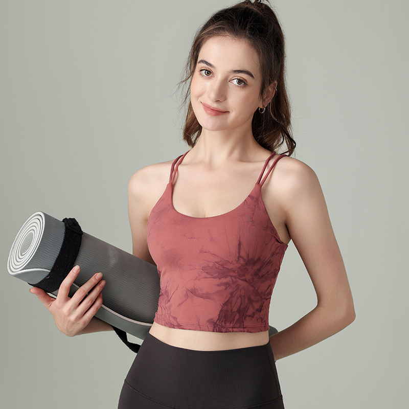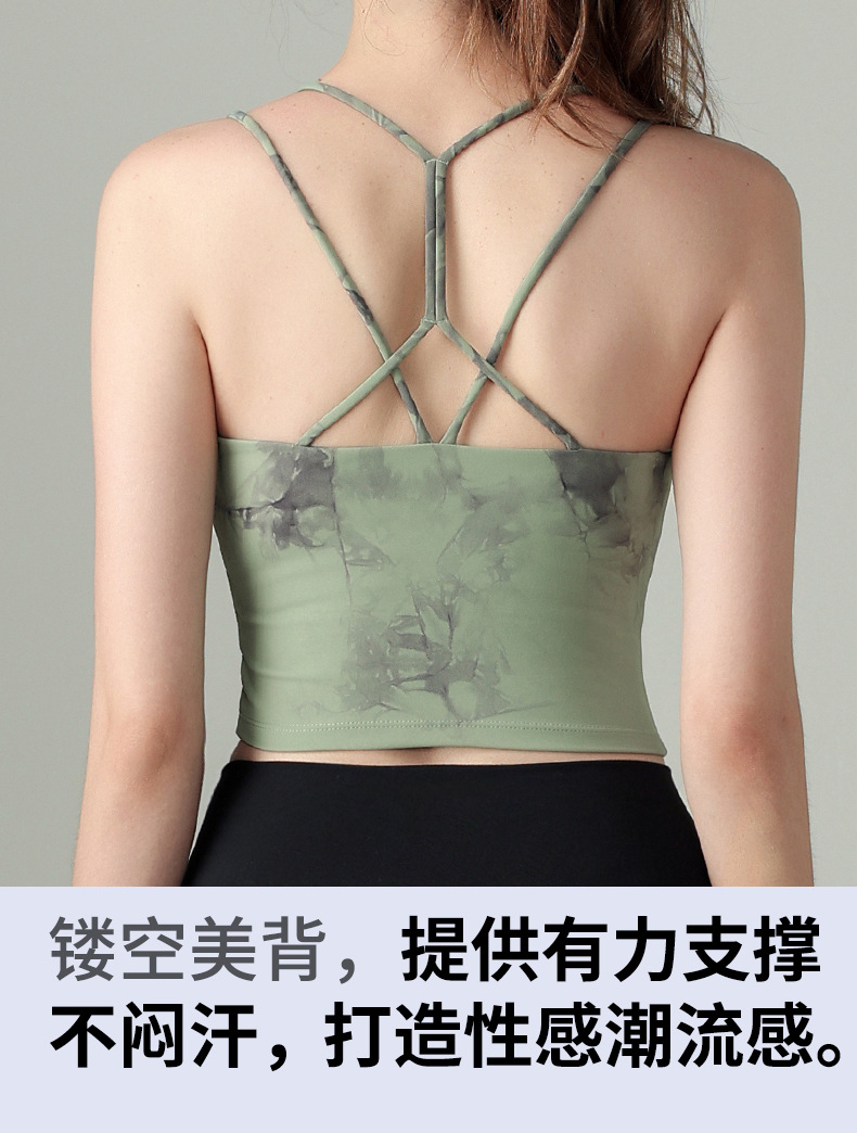 타이다이 슬링, 속이 빈 아름다운 등 피트니스 브라, 가슴 패드가 있는 스포츠 브라, 요가 런닝 여성용 짧은 조끼