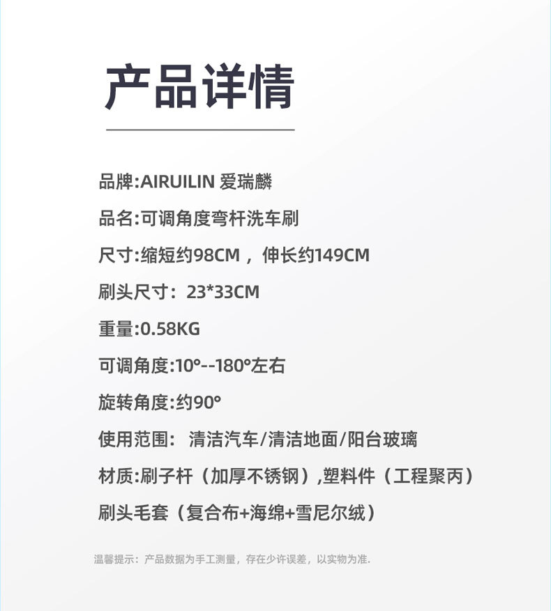 • 확장된 조절 가능한 세차 브러시 + 예비 브러시 헤드