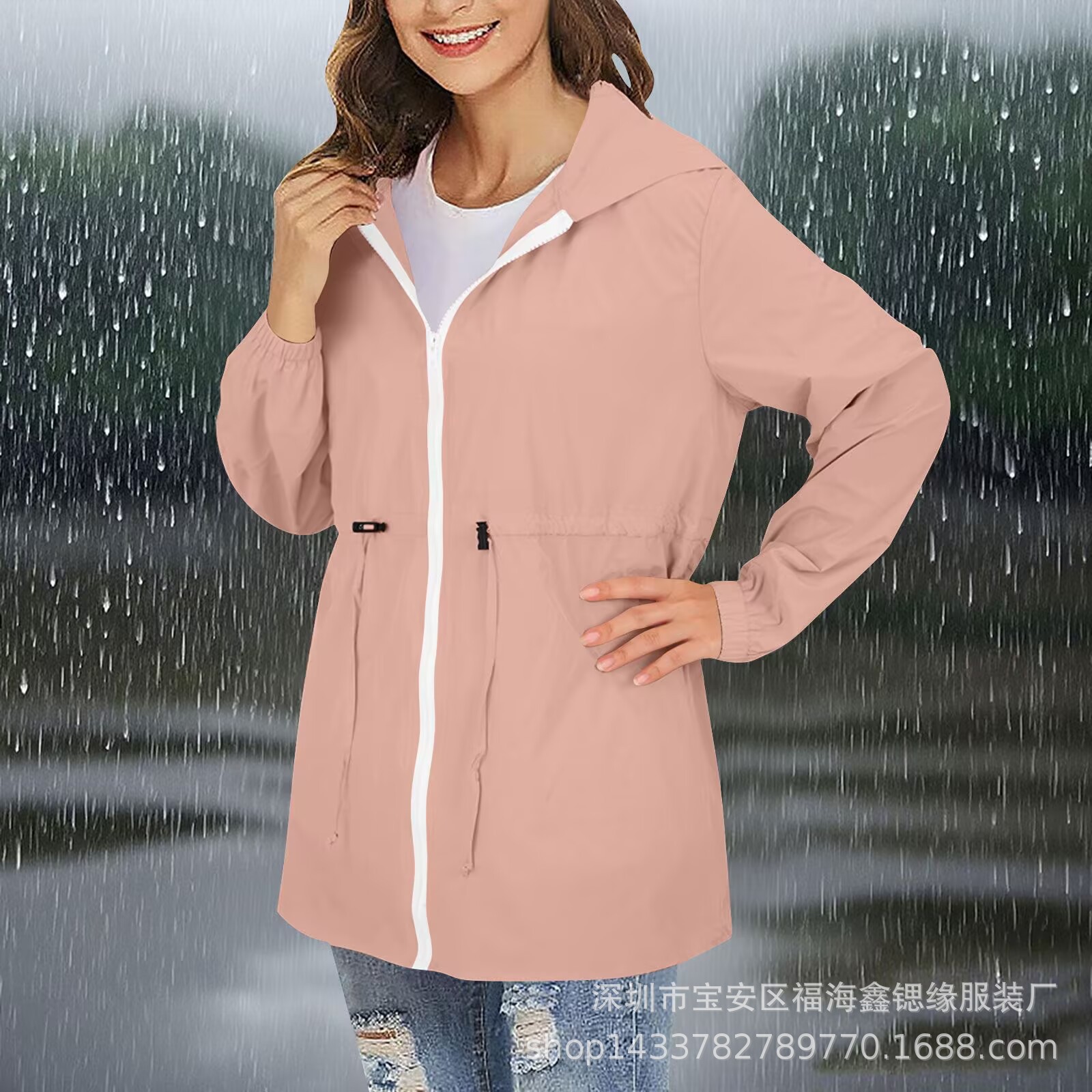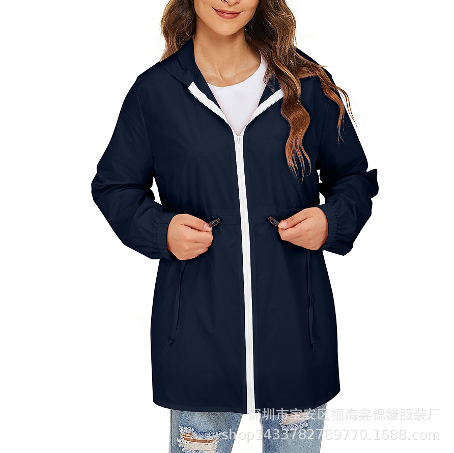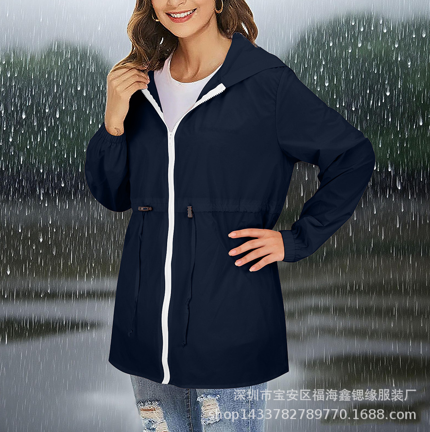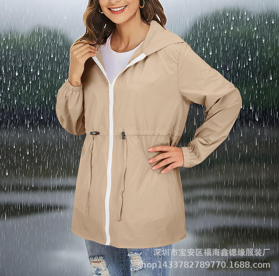 유럽과 미국 2025 Amazon 자켓 지퍼 후드 솔리드 컬러 경량 야외 방수 자켓 여성용 자켓스토어 가기