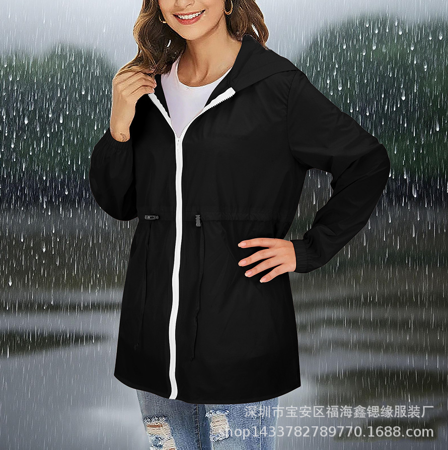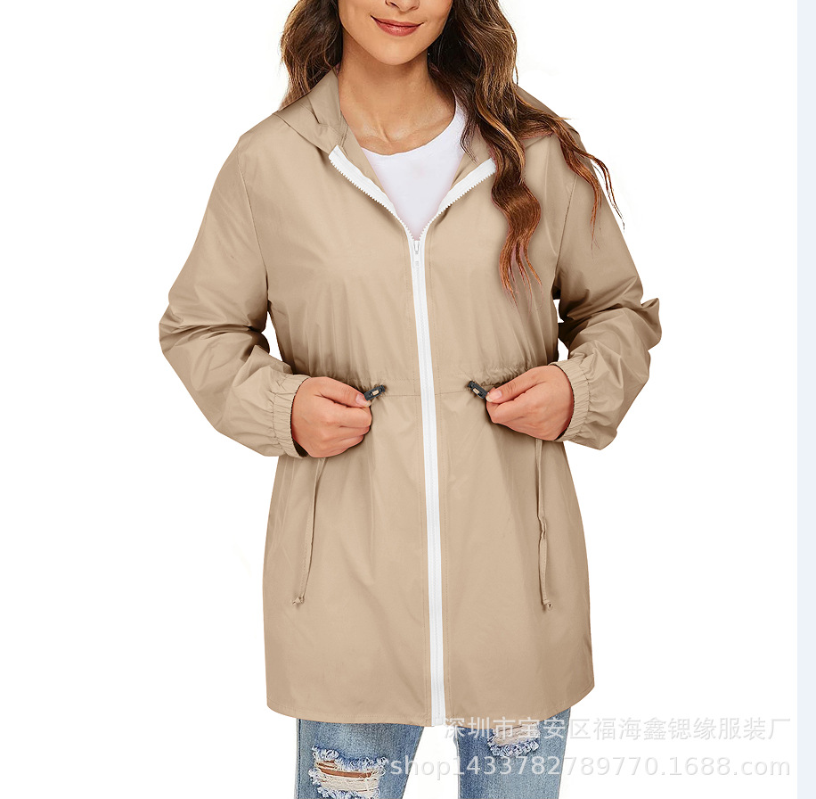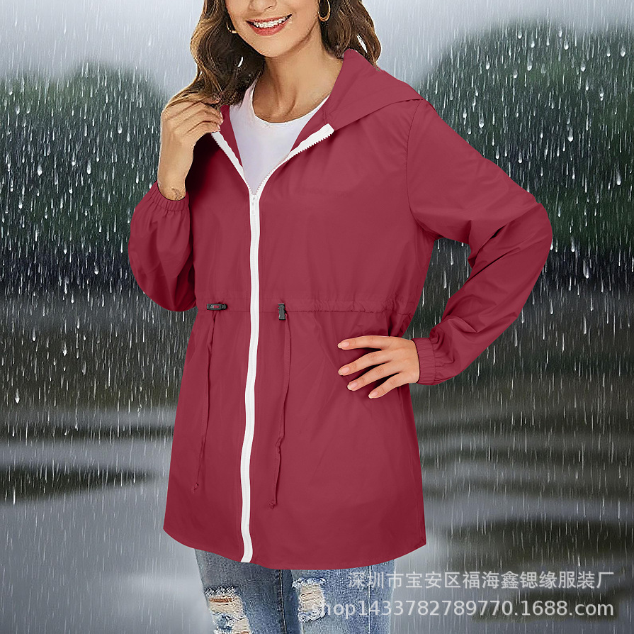 유럽과 미국 2025 Amazon 자켓 지퍼 후드 솔리드 컬러 경량 야외 방수 자켓 여성용 자켓