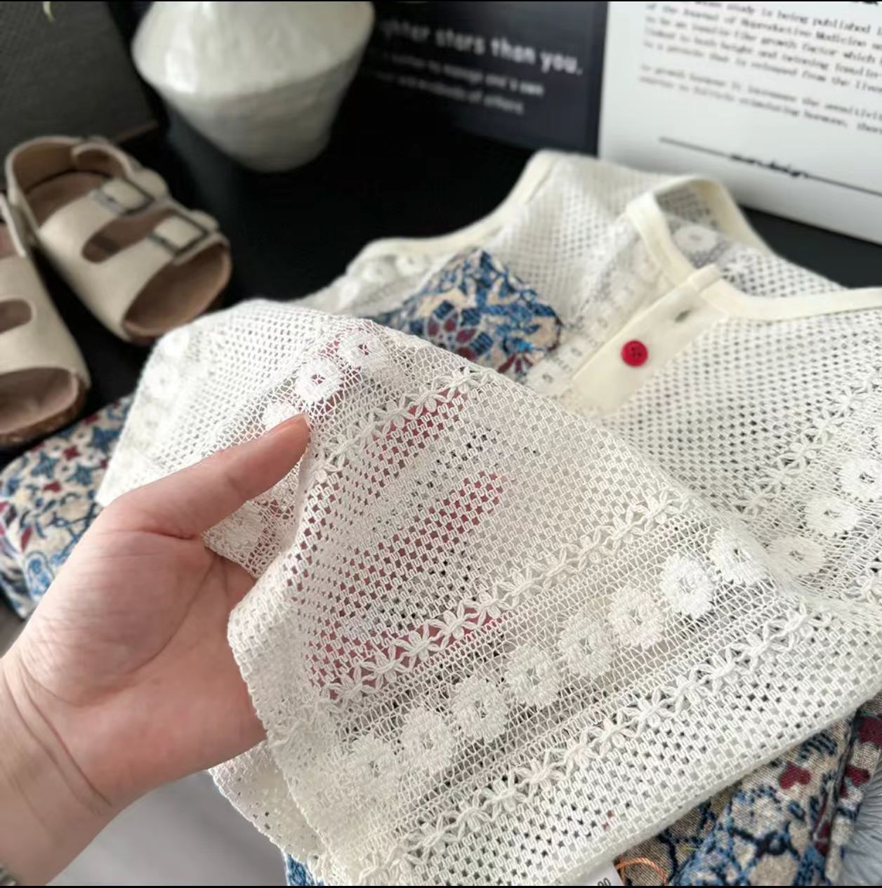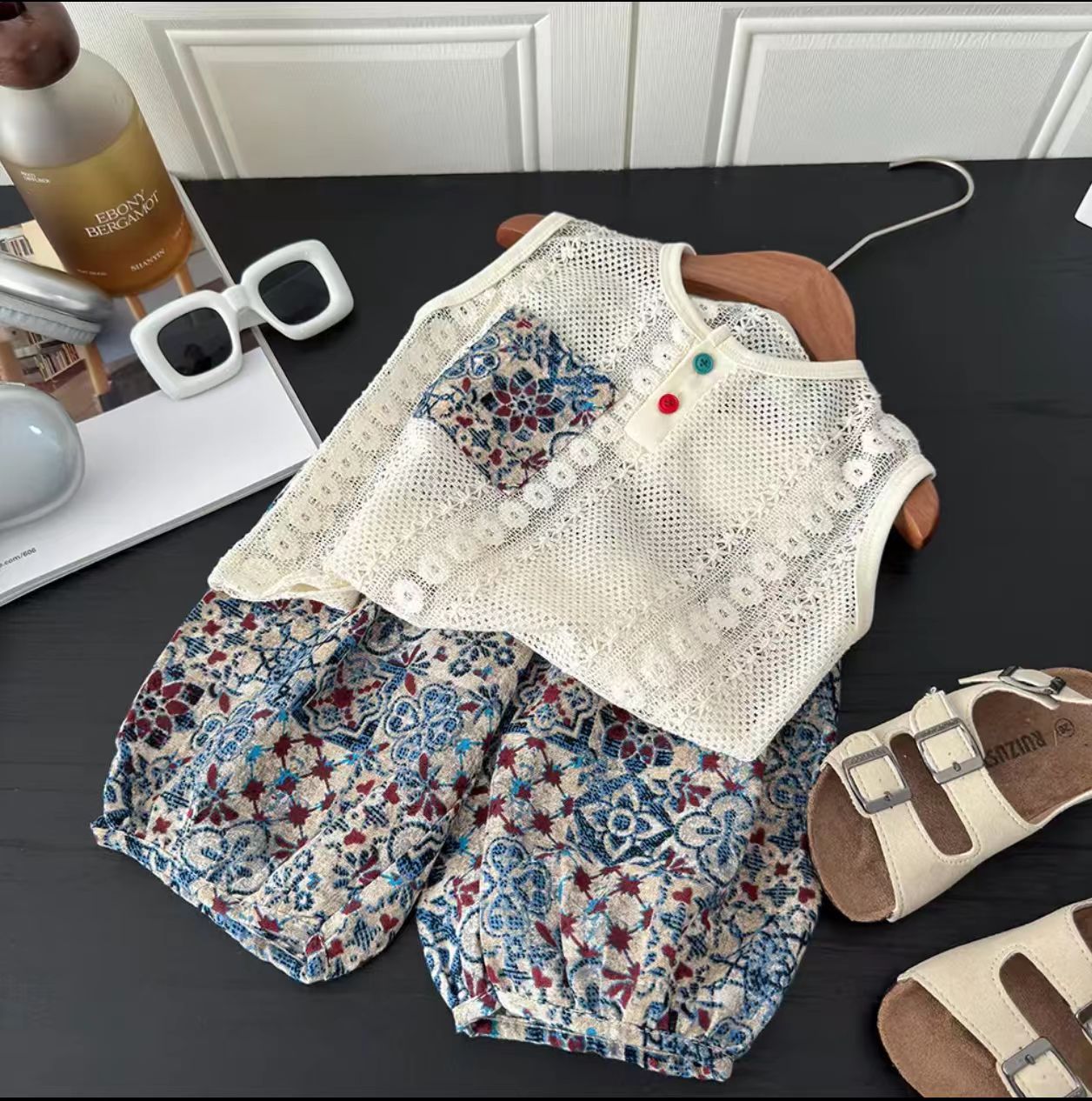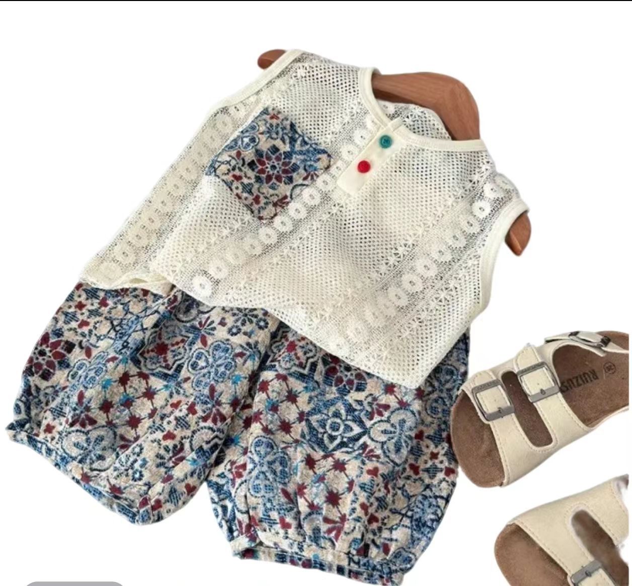 남아 민족풍 세트 2025 여름 니트 크로셰 스티치 폴로 셔츠 투피스 세트 트렌디한 아동용 레이스 디자인스토어 가기