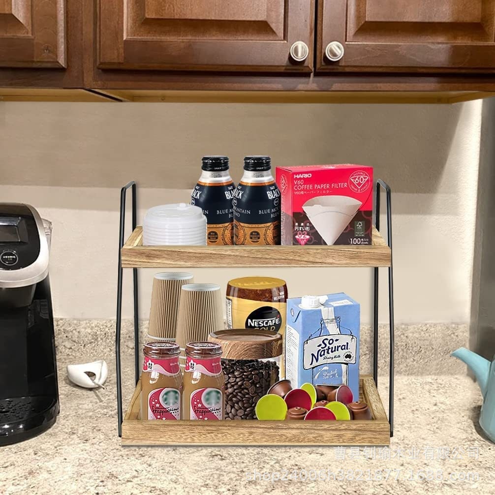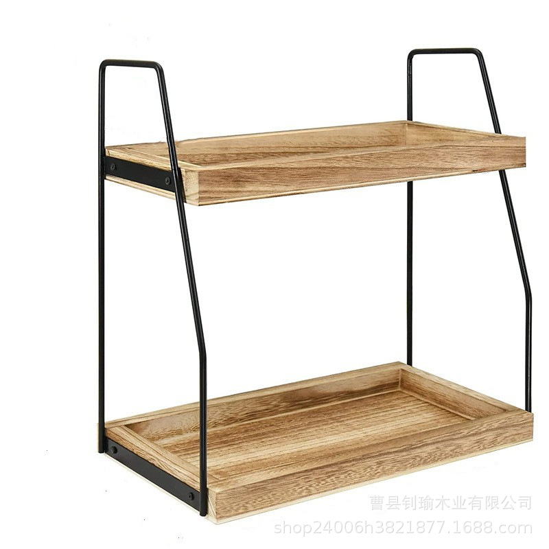 주방 조미료 용품 정리 랙 크리 에이 티브 홈 데스크탑 화장품 세면 용품 더블 레이어 목재 스토리지 랙