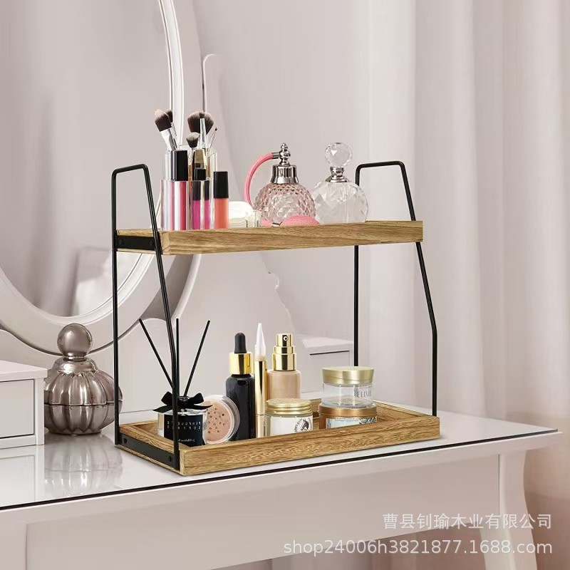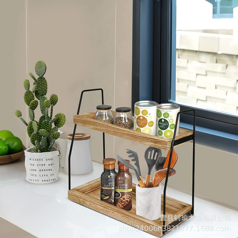 주방 조미료 용품 정리 랙 크리 에이 티브 홈 데스크탑 화장품 세면 용품 더블 레이어 목재 스토리지 랙스토어 가기