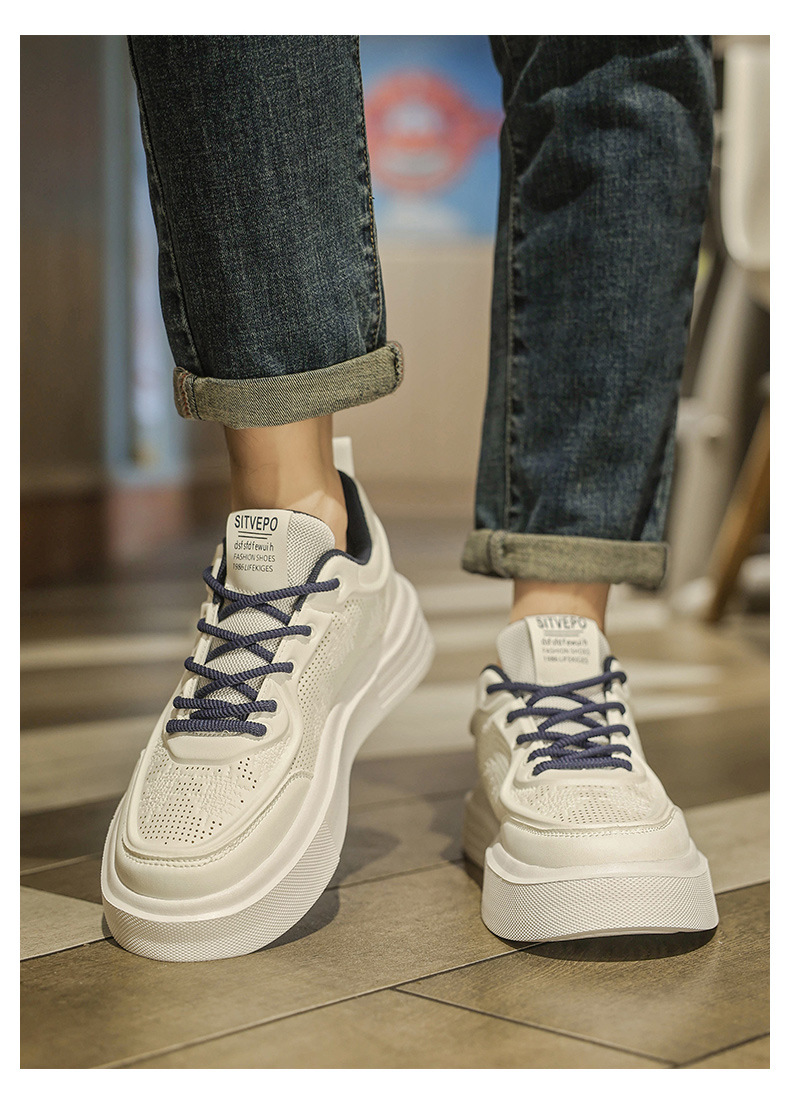 작은 흰색 남성 신발 여름 새로운 통기성 캐주얼 유행 운동화 남성 흰색 신발 미끄럼 방지 두꺼운 밑창 다목적 스포츠 유행 신발스토어 가기